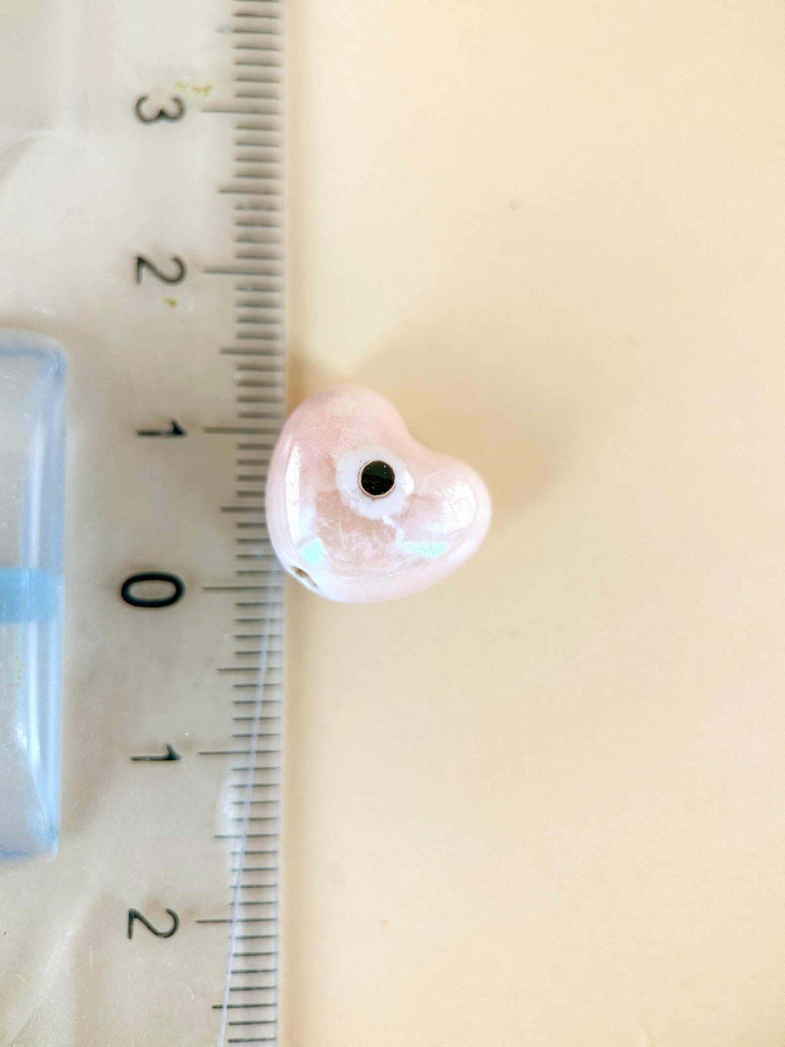 2 perles céramique coeur avec oeil