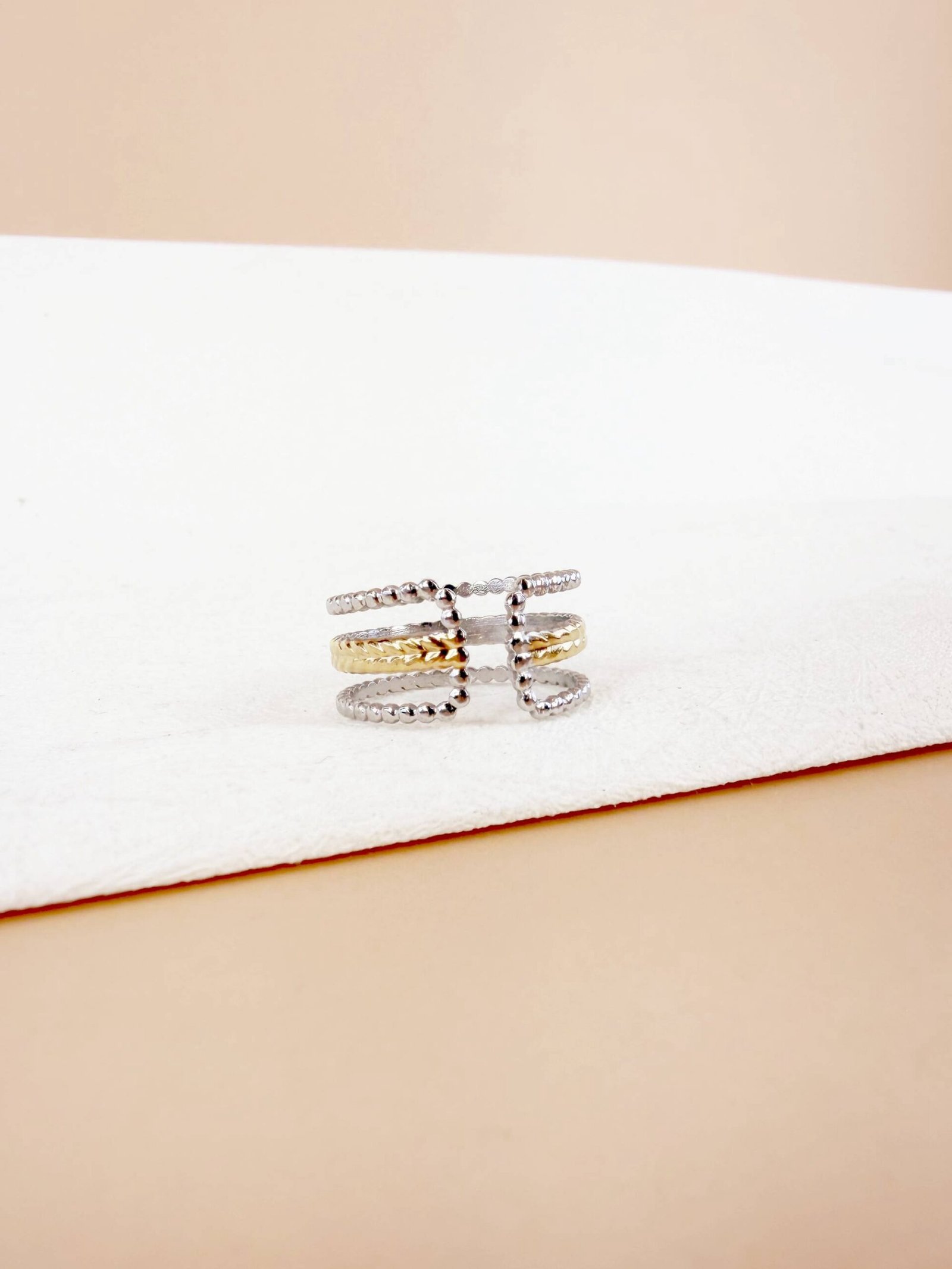 Bague Ajustable « Alliance Tricolore » – Acier Inoxydable