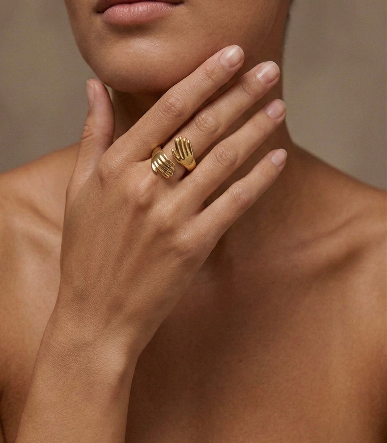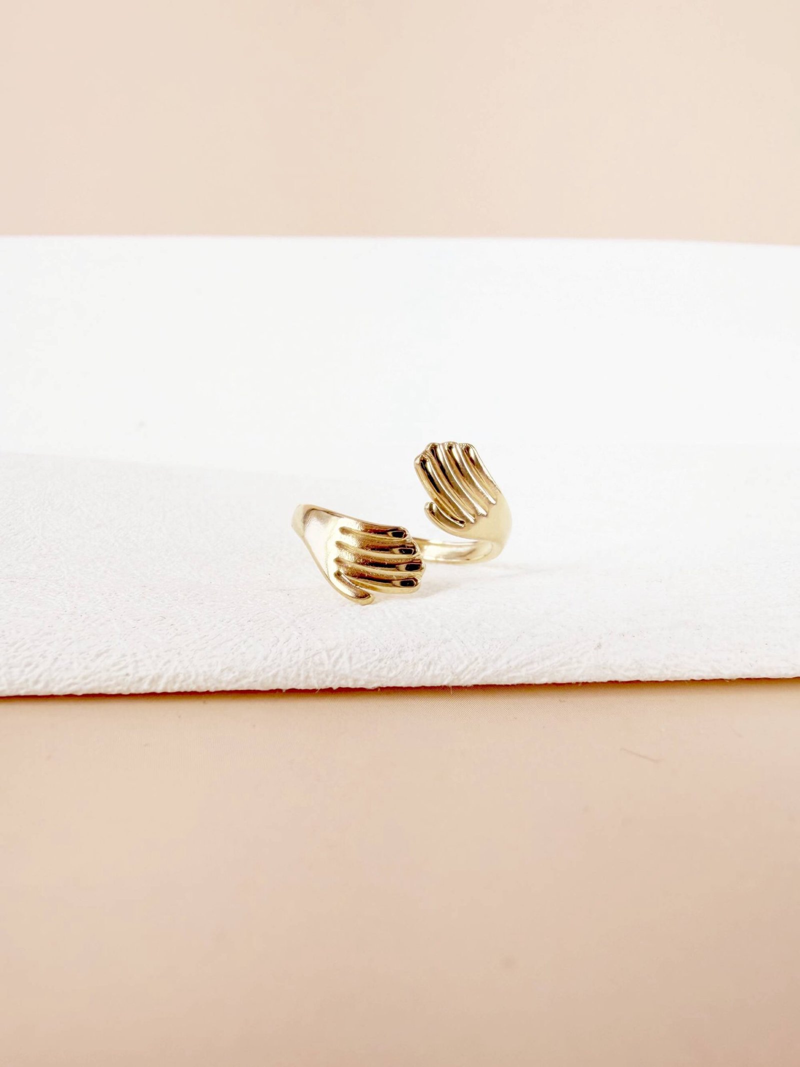 Bague Ajustable « Étreinte Bienveillante » – Acier Inoxydable Doré