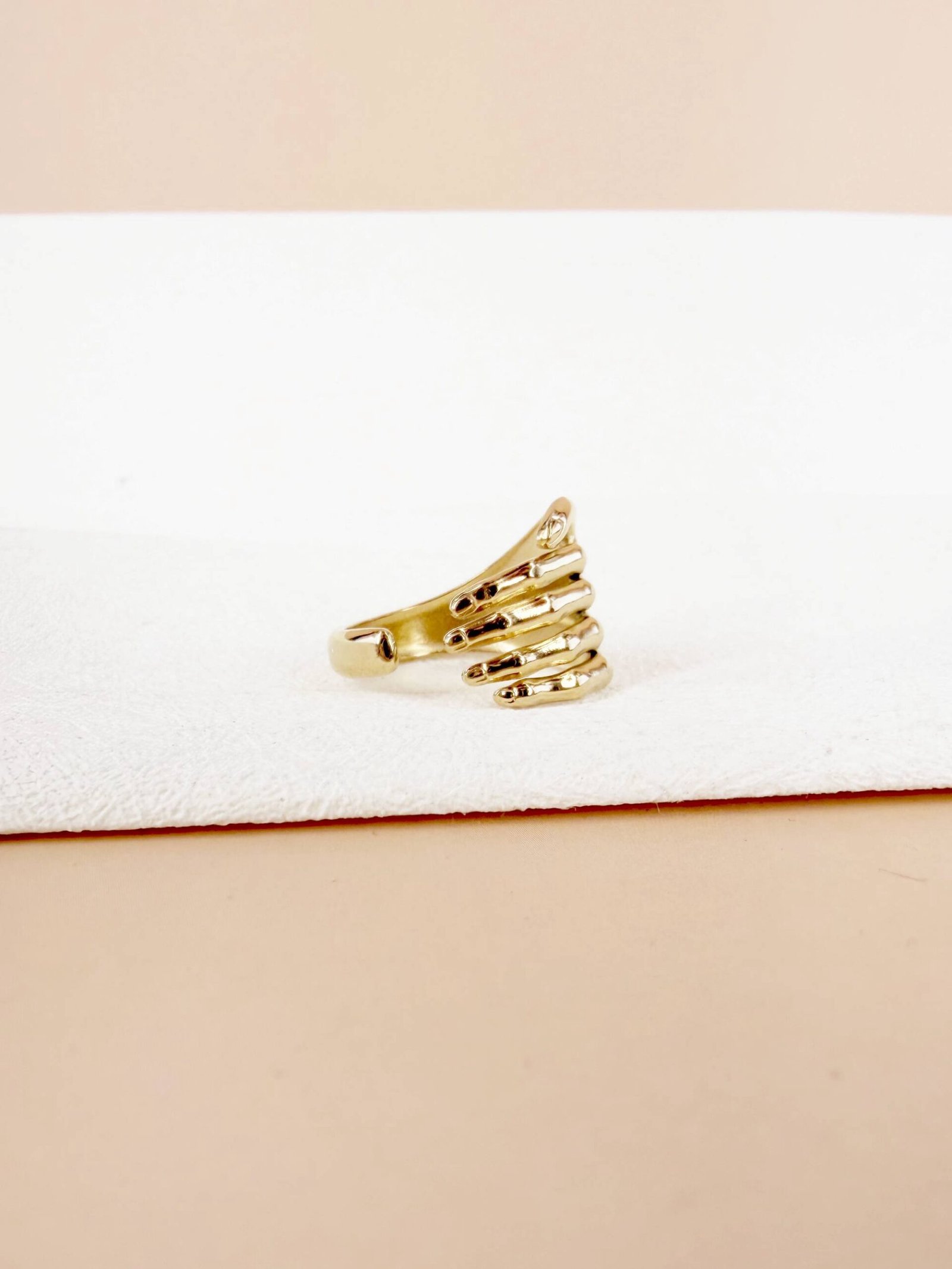 Bague Ajustable « Main Protectrice » – Acier Inoxydable Doré