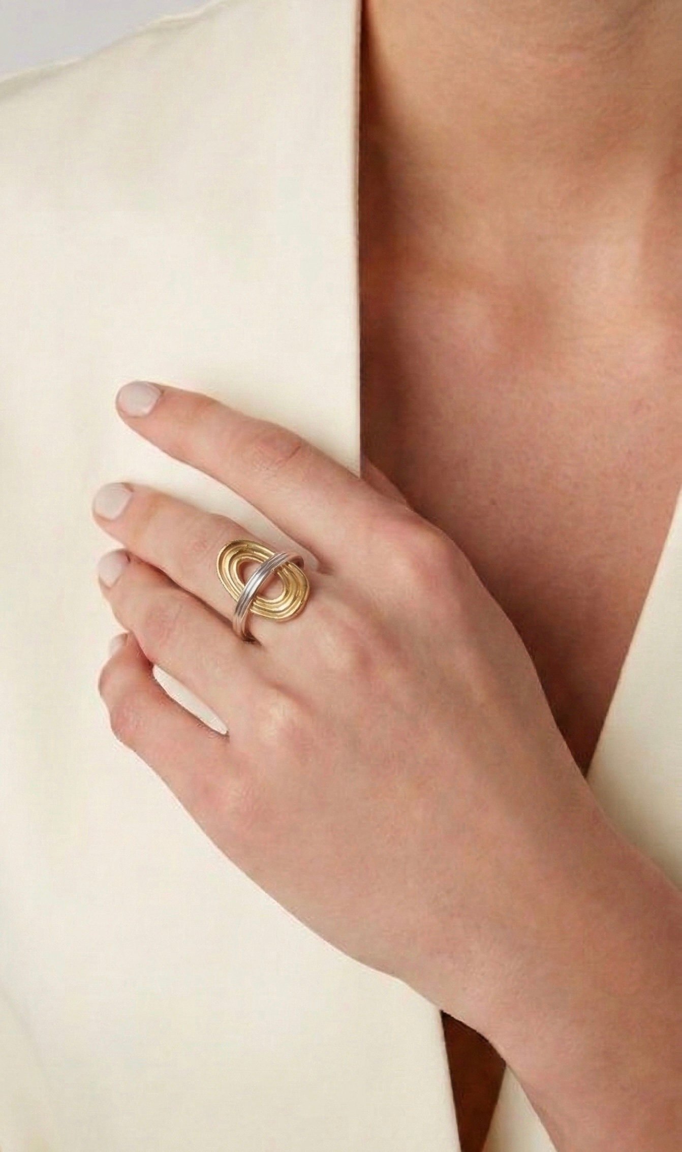 Bague Ajustable « Orbitale Bicolore » – Acier Inoxydable