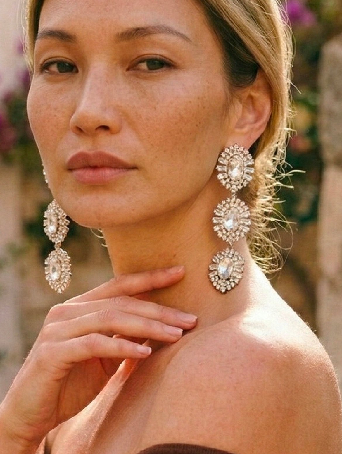 Boucles d’Oreilles Clips » Cascade de Cristaux » – Lustres Etincelants