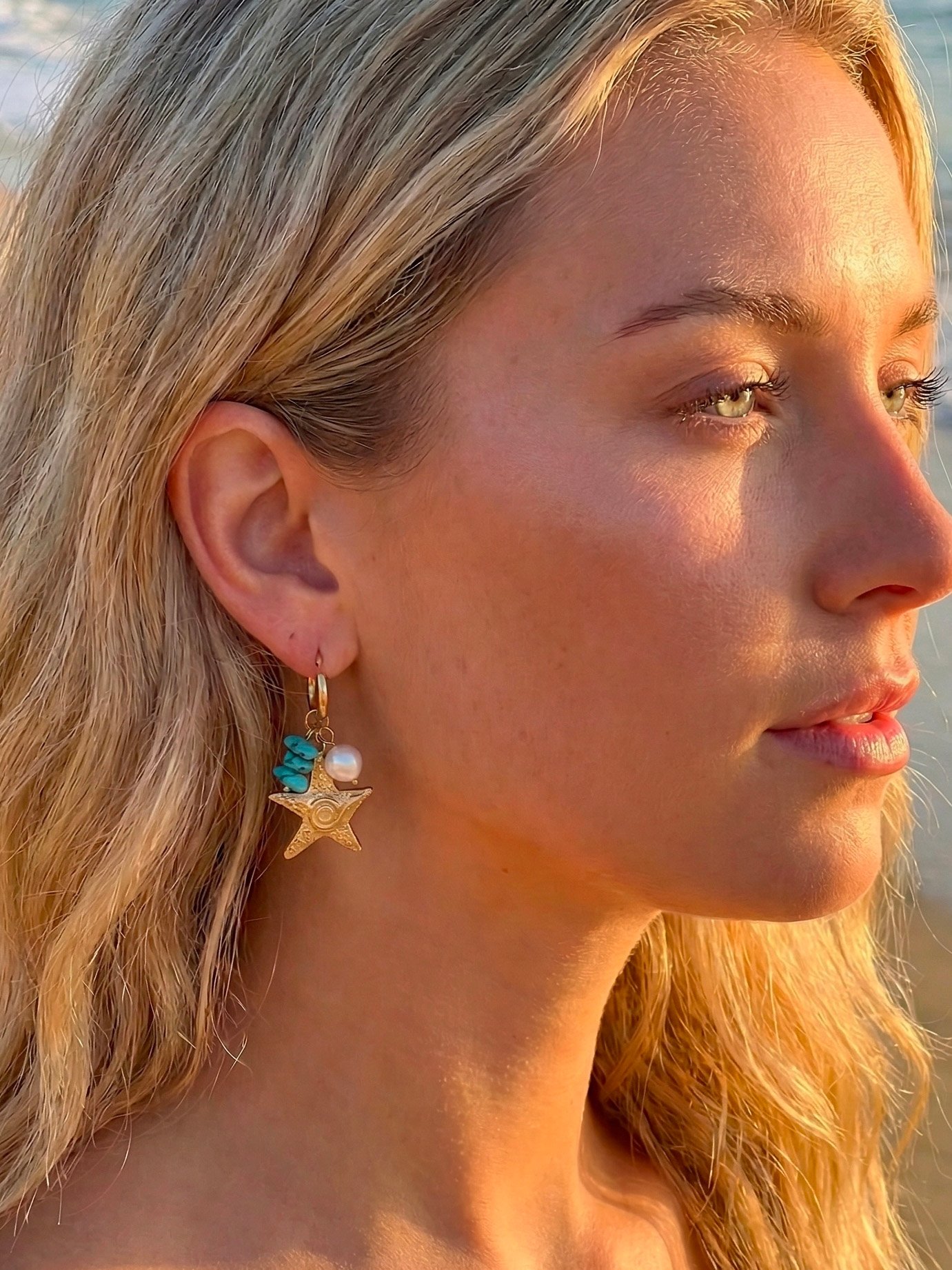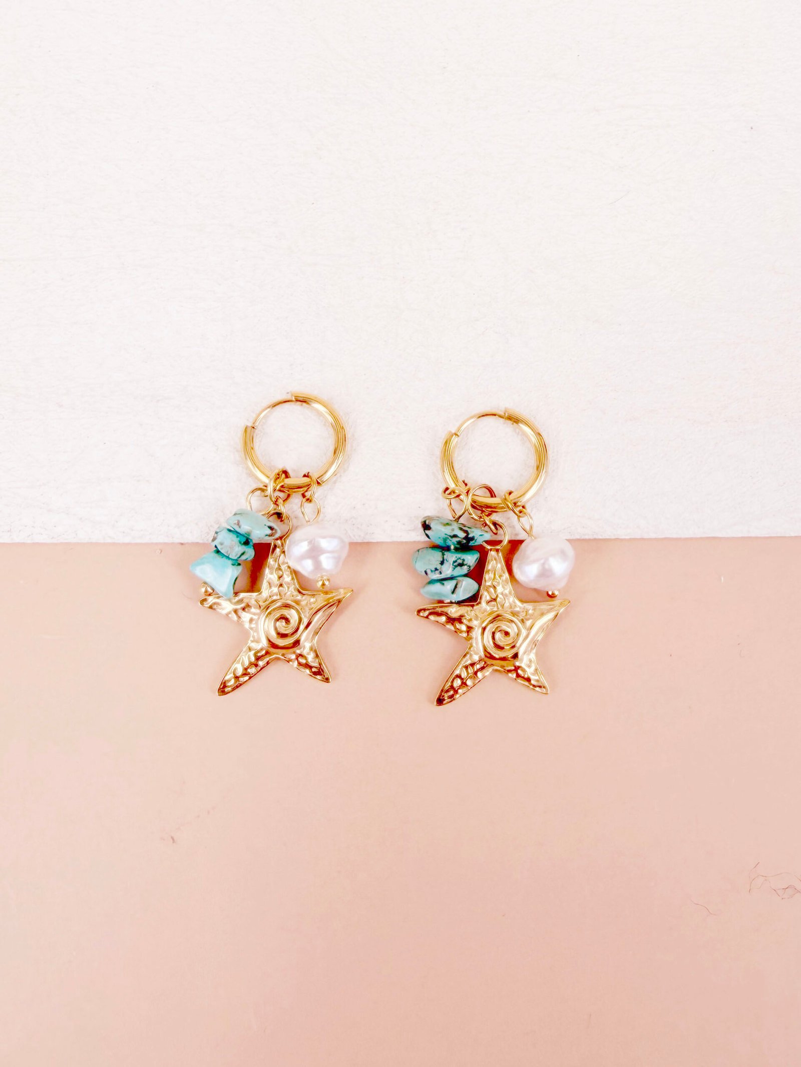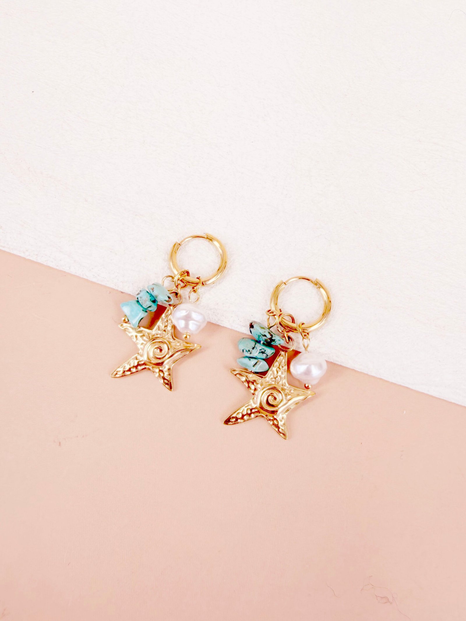 Boucles d’oreilles Dune – Etoile, perle et pierre