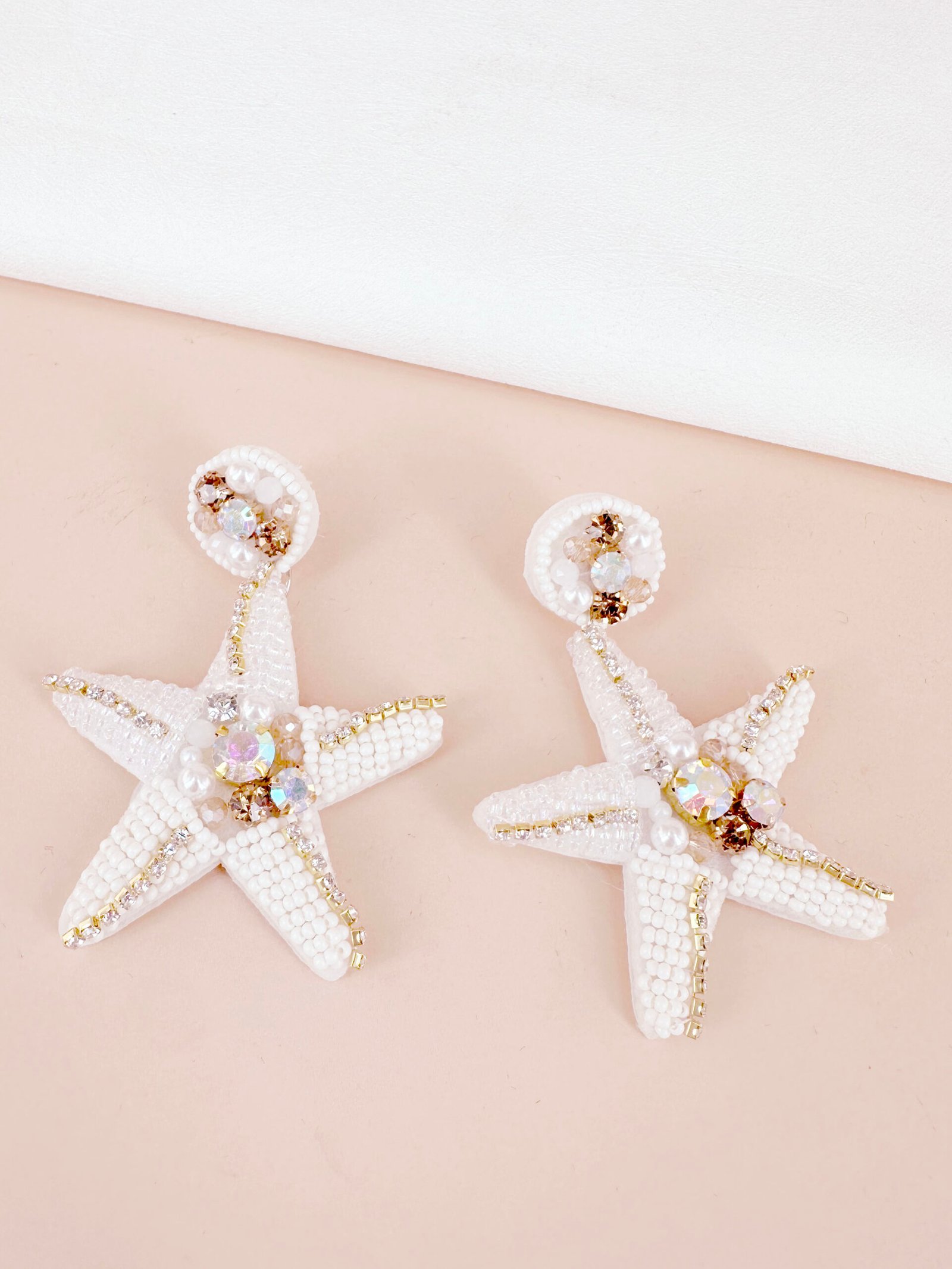 Boucles d’oreilles étoile de mer blanches brodées à la main