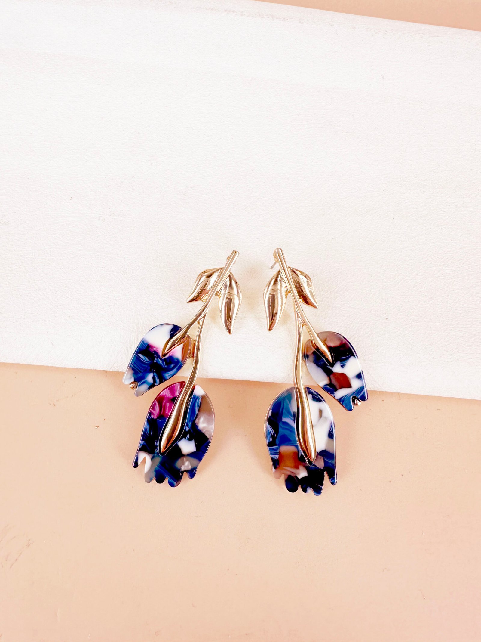 Boucles d’oreilles fleurs et résine. Matière: métal fantaisie