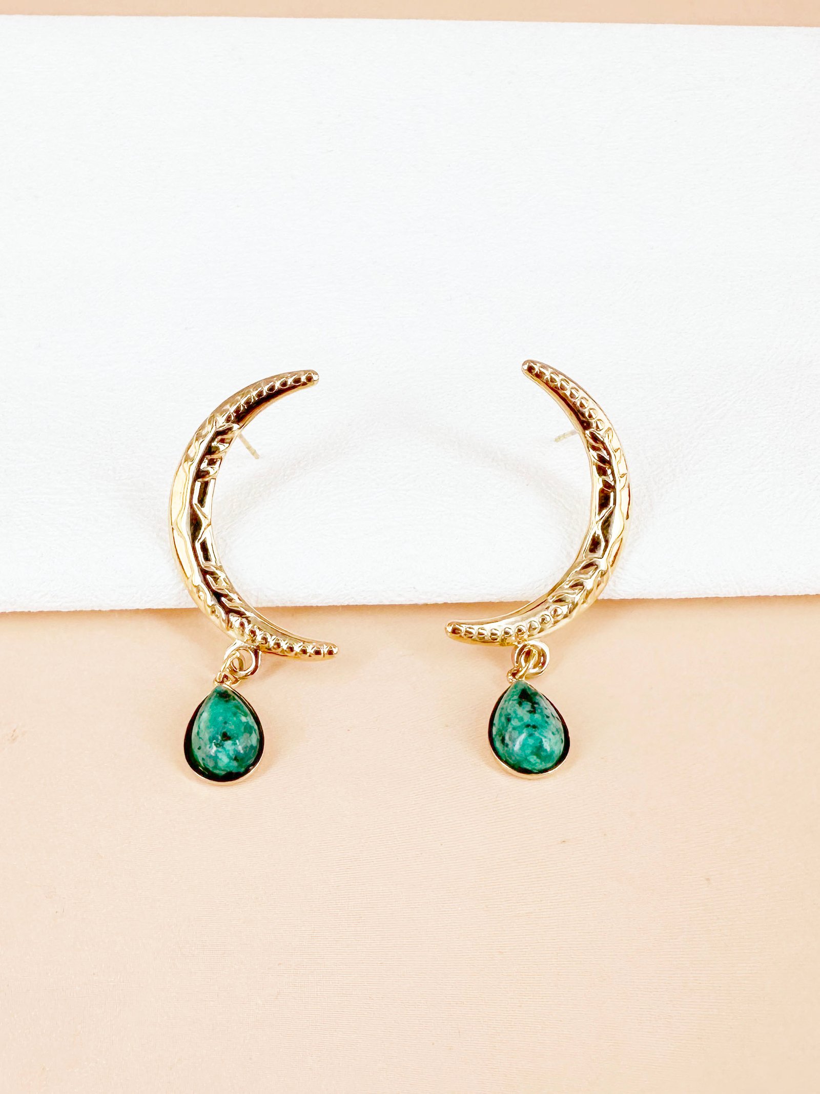 Boucles d’oreilles lune avec pierre verte en acier inoxydable