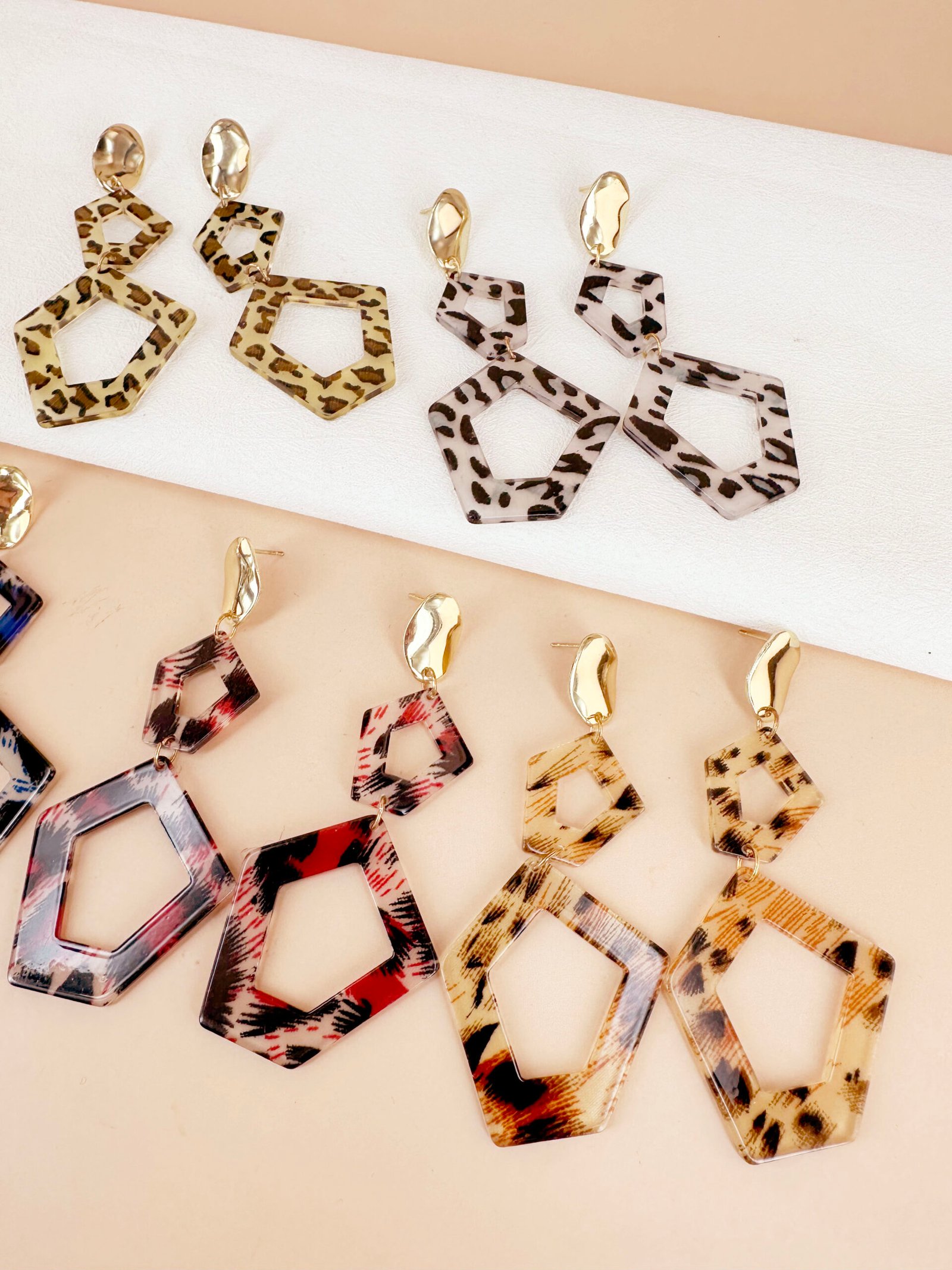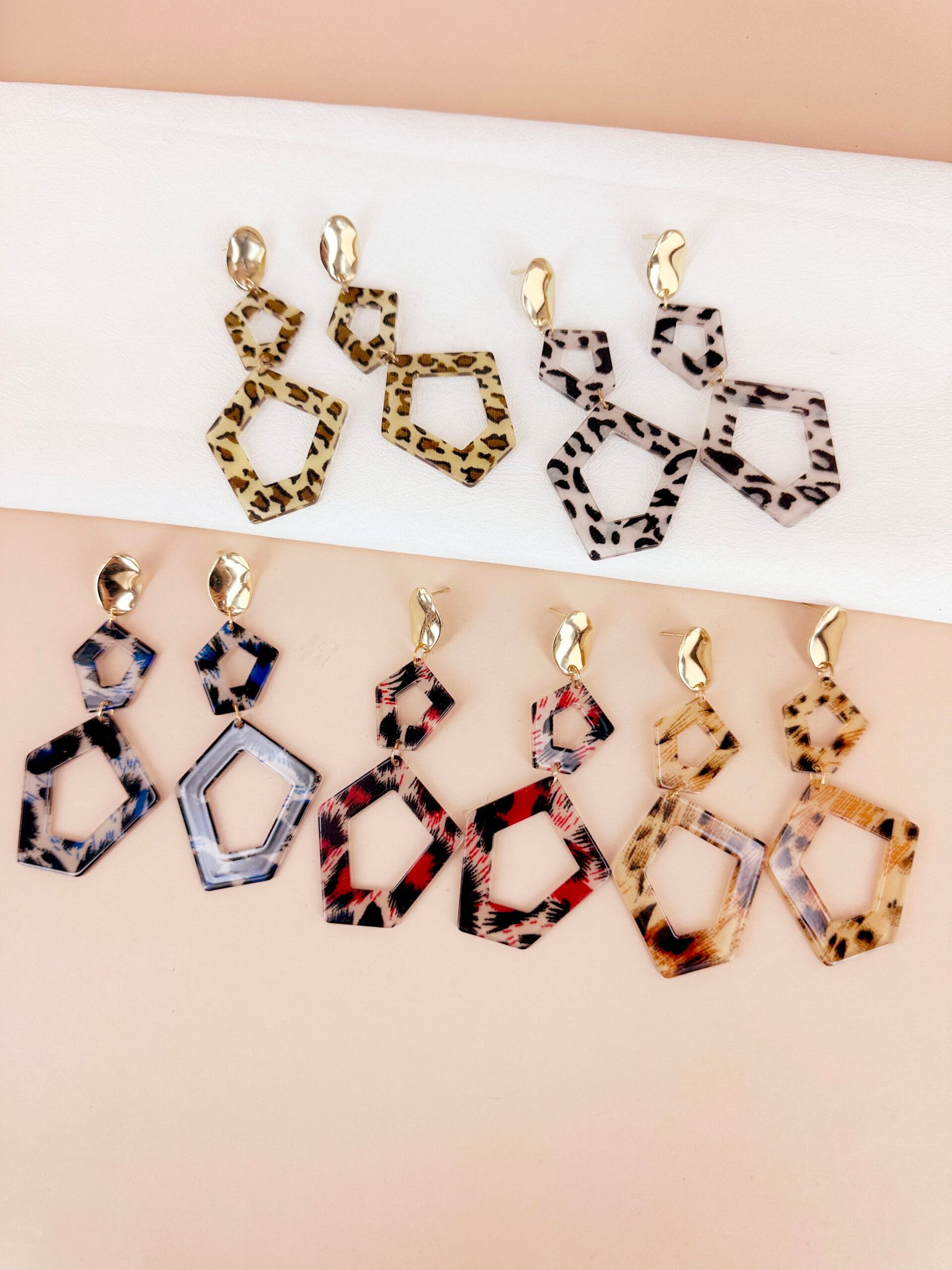 Boucles d’oreilles pendantes résine motif léopard – Lot de 7