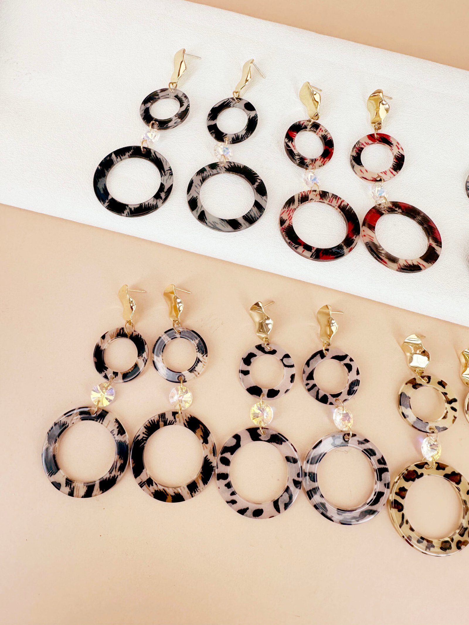 Boucles d’oreilles pendantes résine motif léopard – Lot de 6