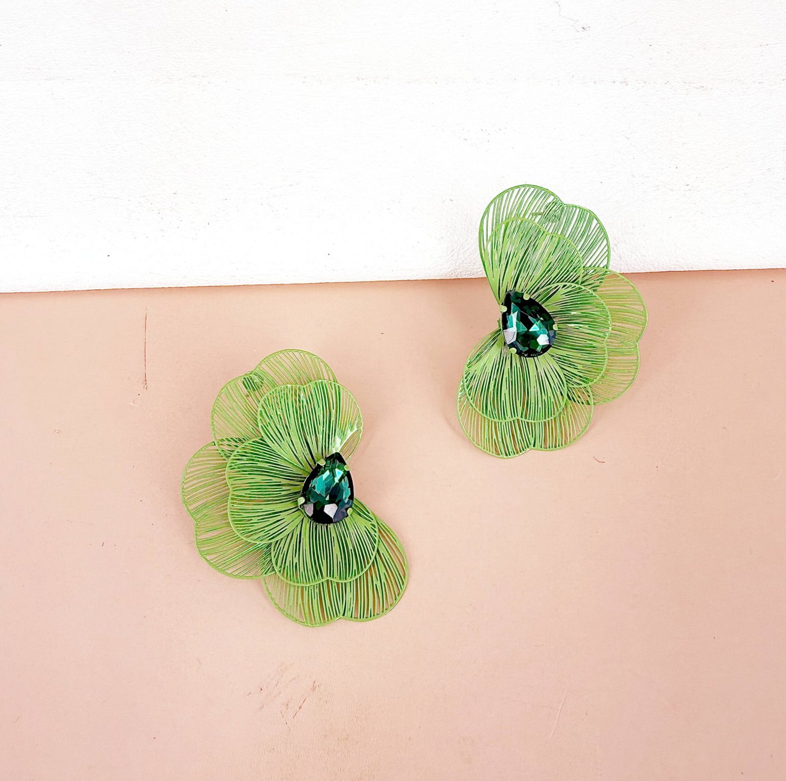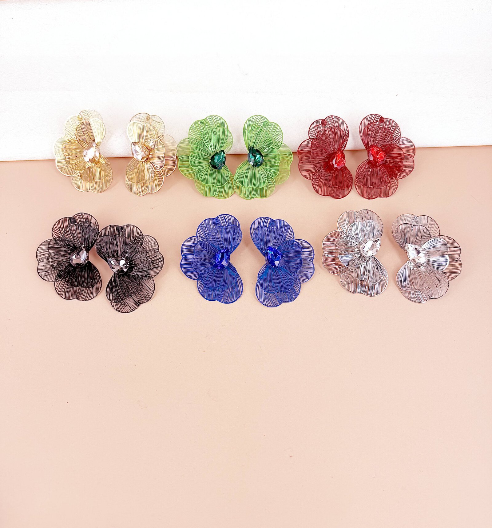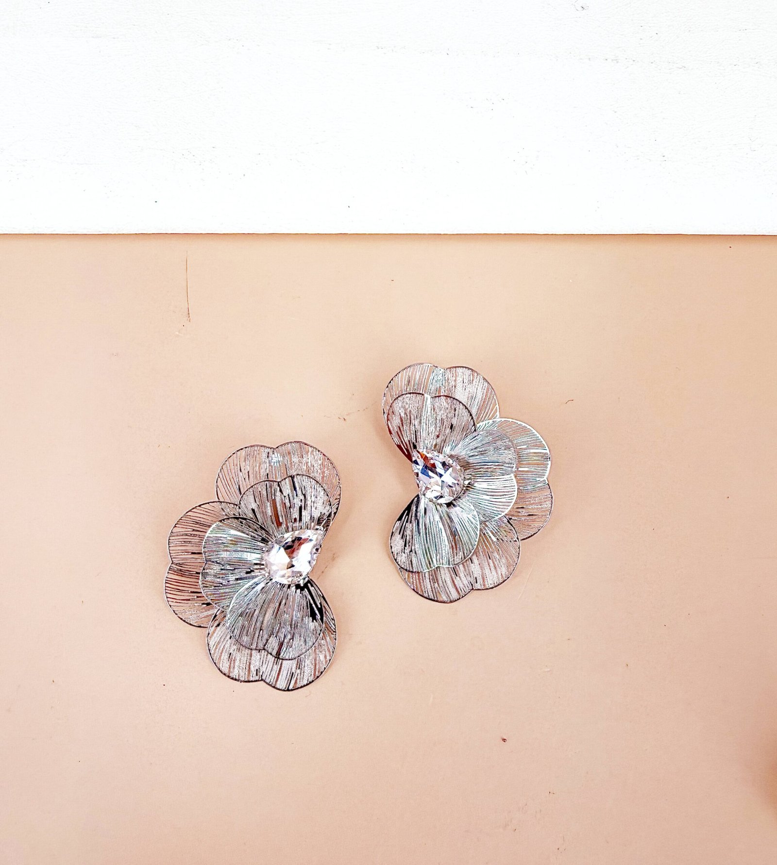 Boucles d’Oreilles « Pétales de Soie » – Fleurs en Filigrane et Cristal