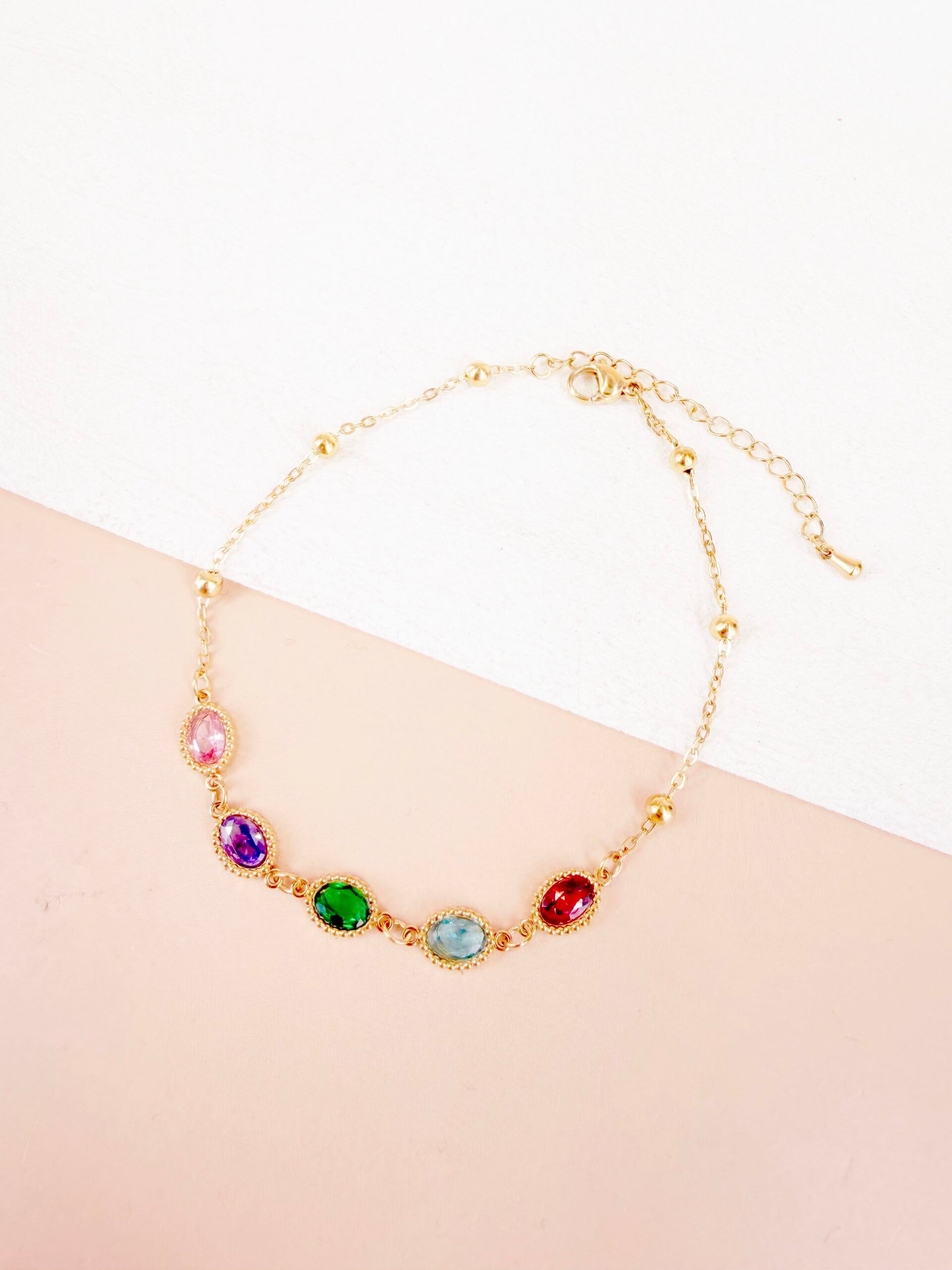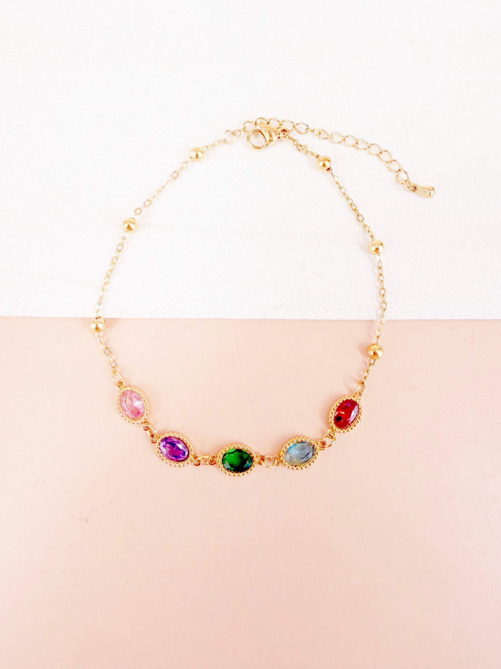 Bracelet cheville Melina – strass ovale coloré