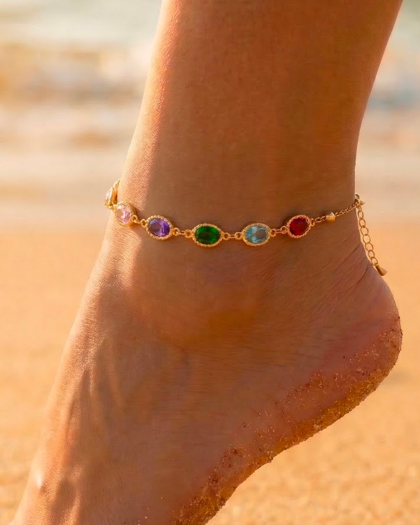 Bracelet cheville Sina – strass pendant coloré