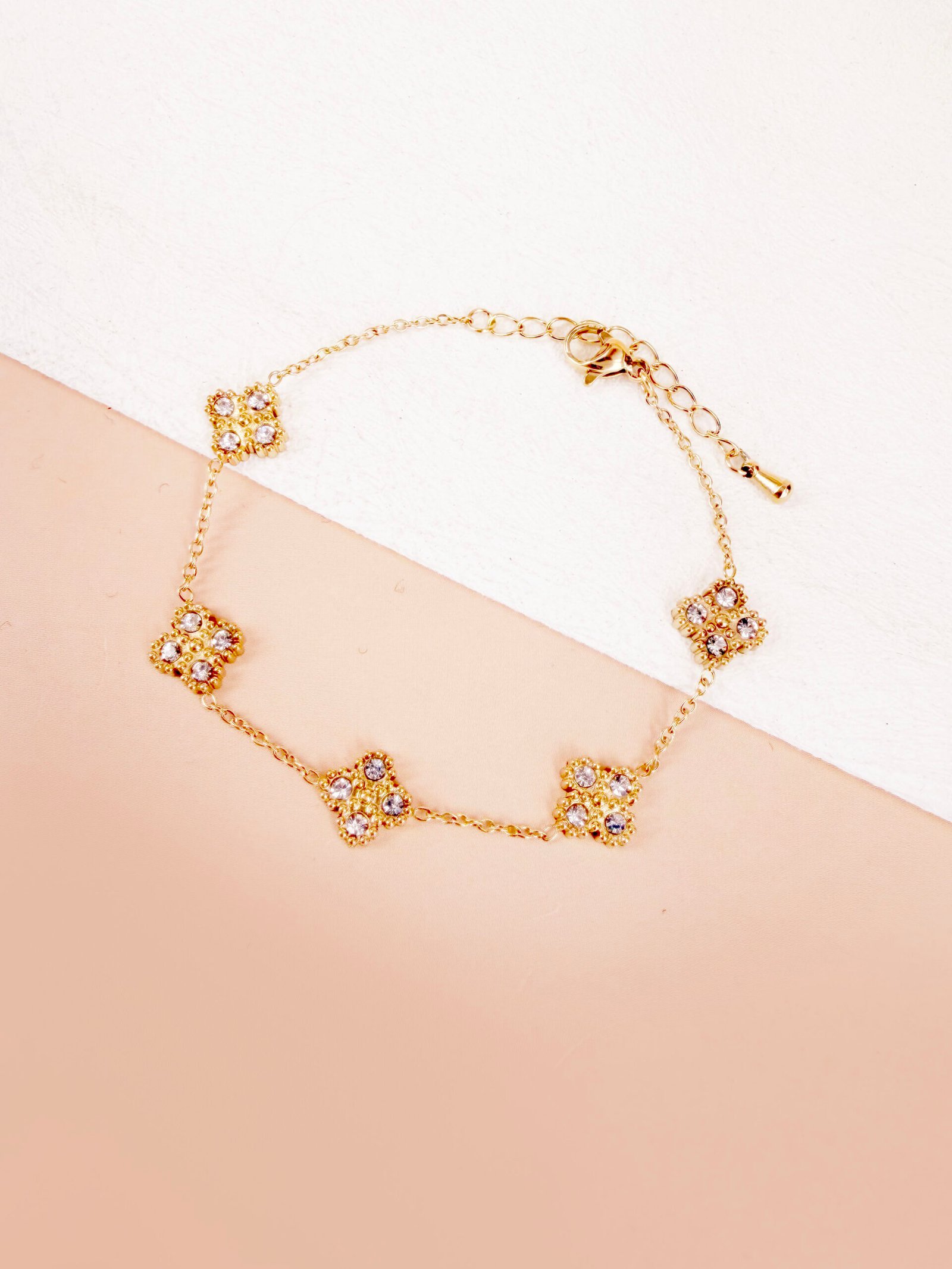Bracelet Rosa, strass fleur pendante