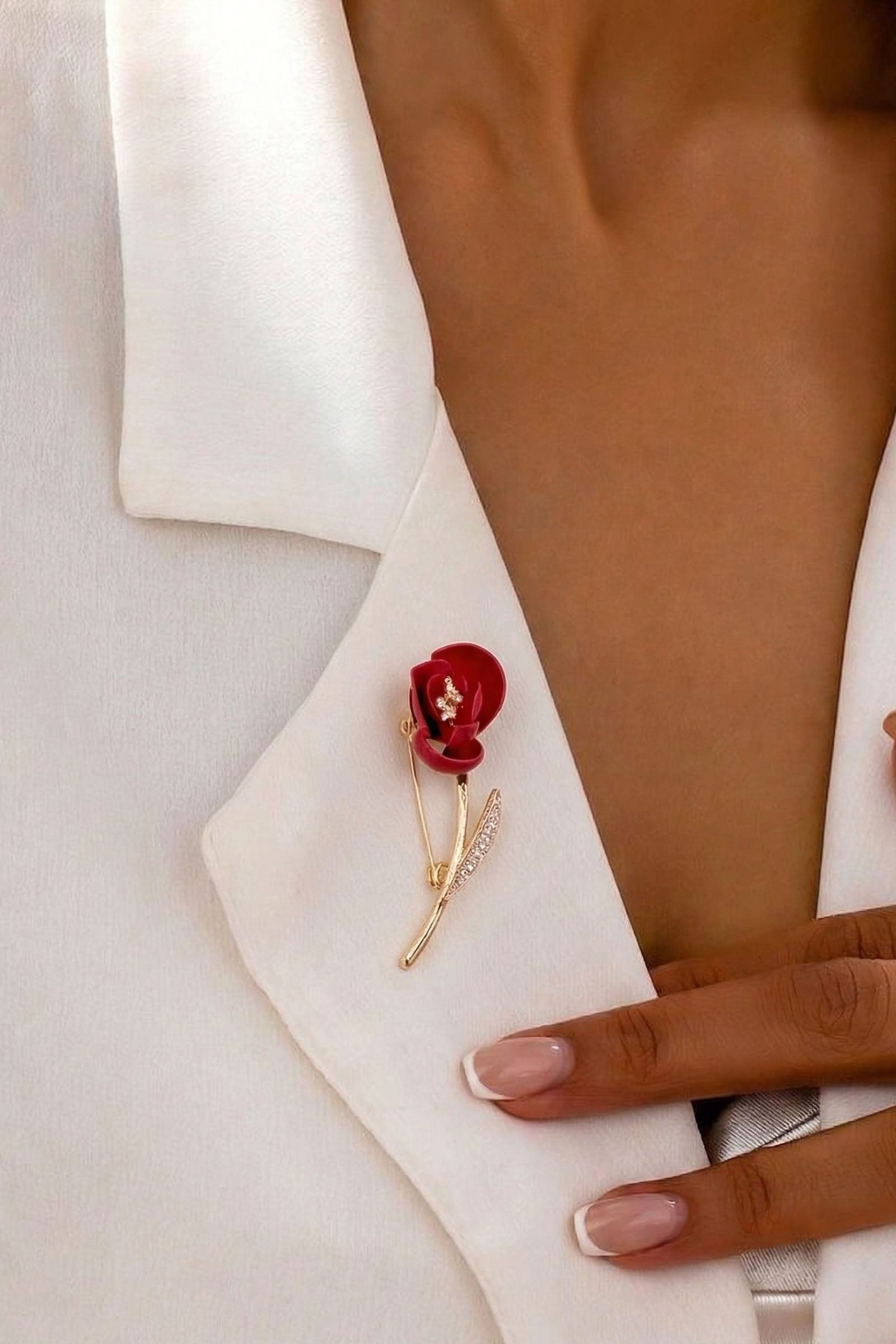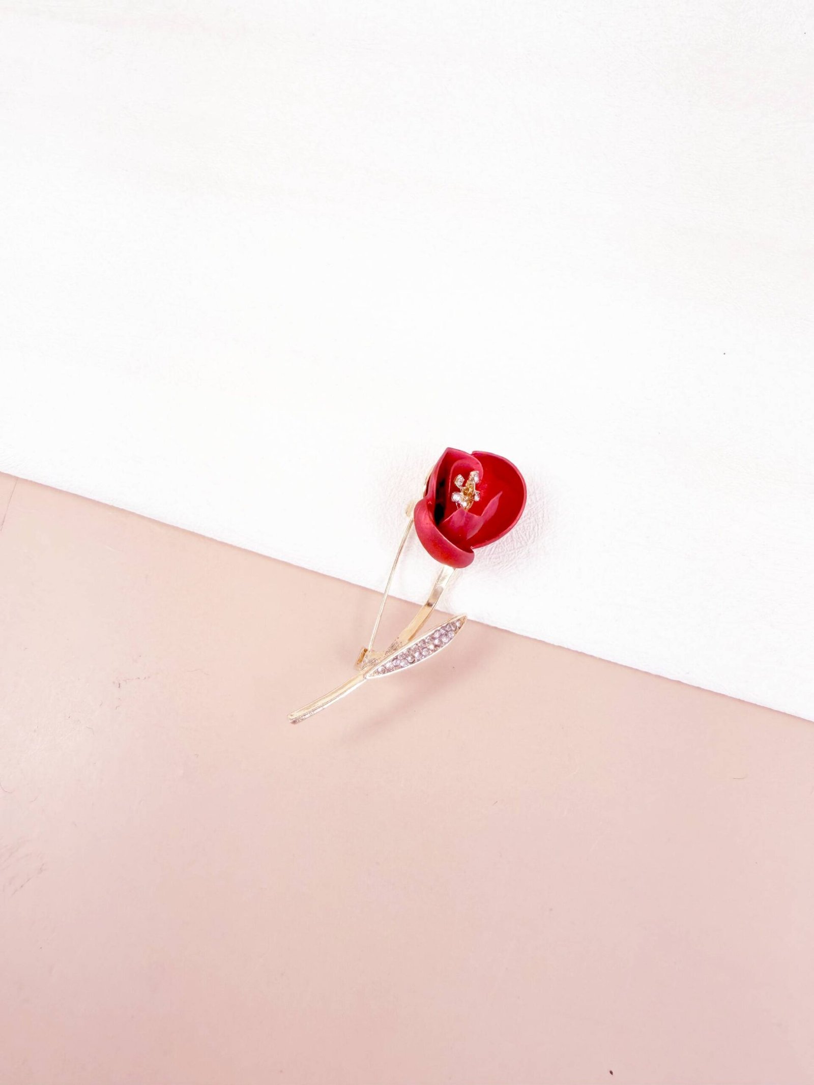 Broche Tulipe Éternelle en émail satiné et cristal