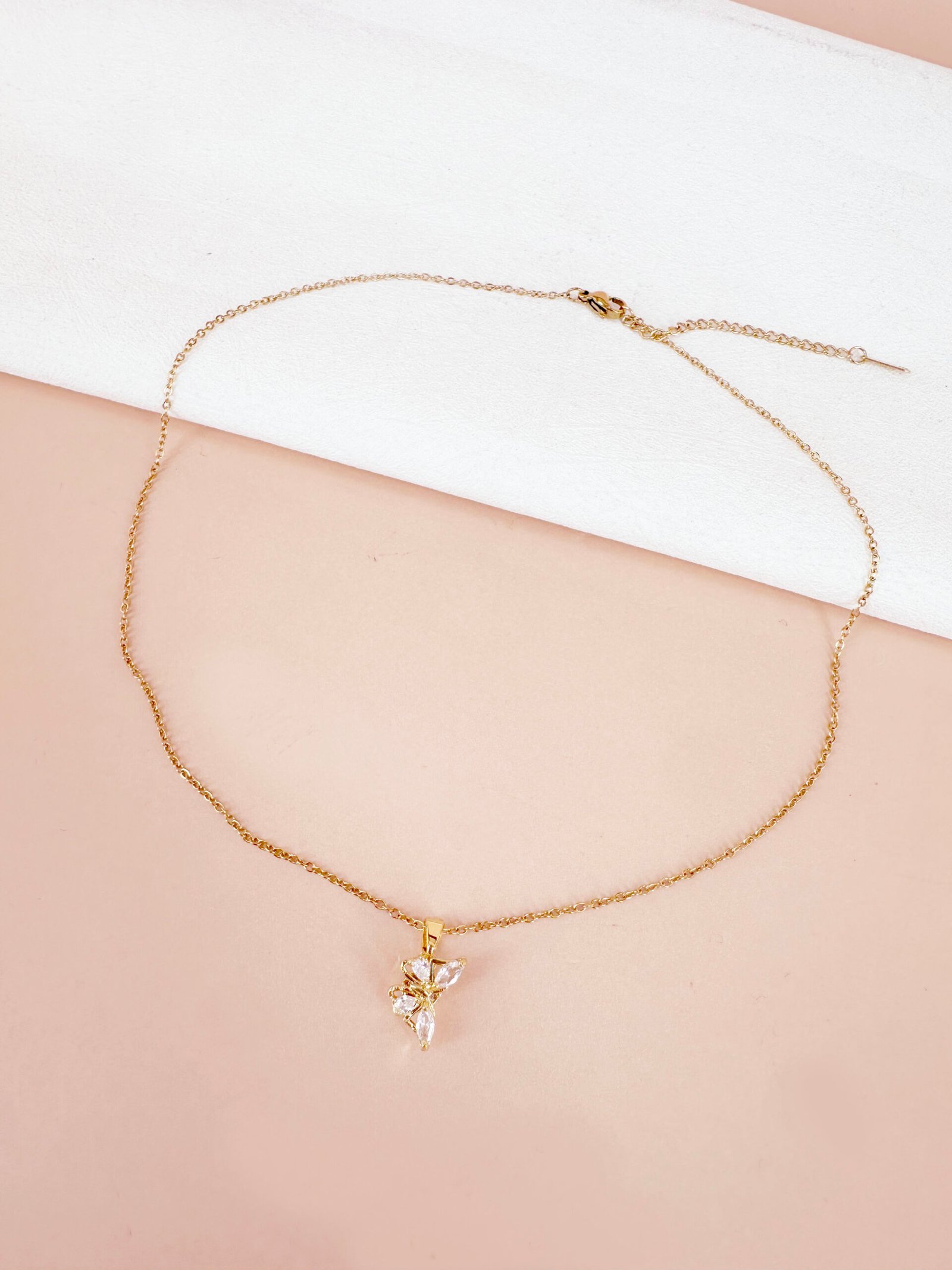 Collier anti stress papillon, matière : chaîne acier inoxydable 304 et pendentif en laiton plaqué argent rhodium