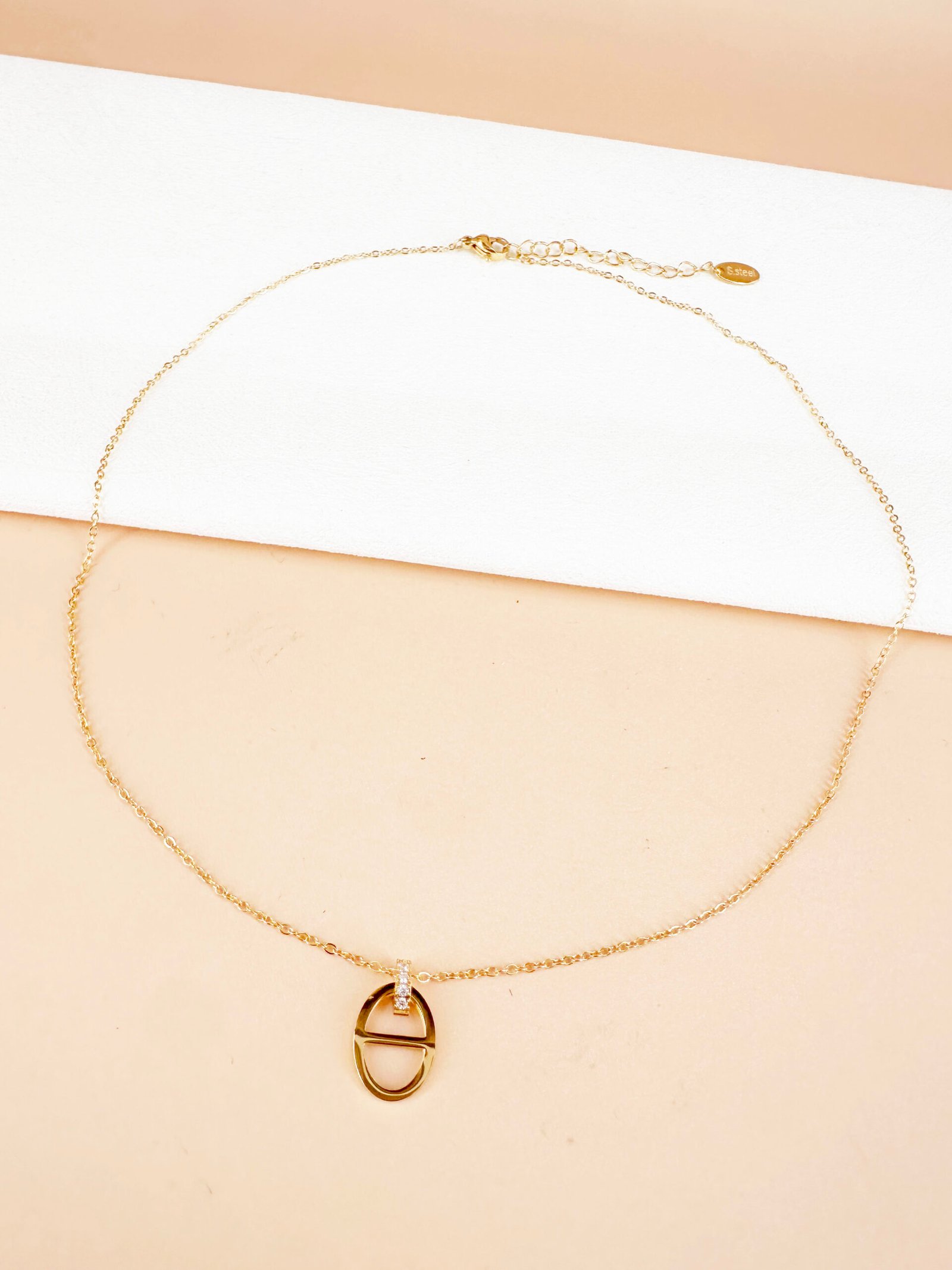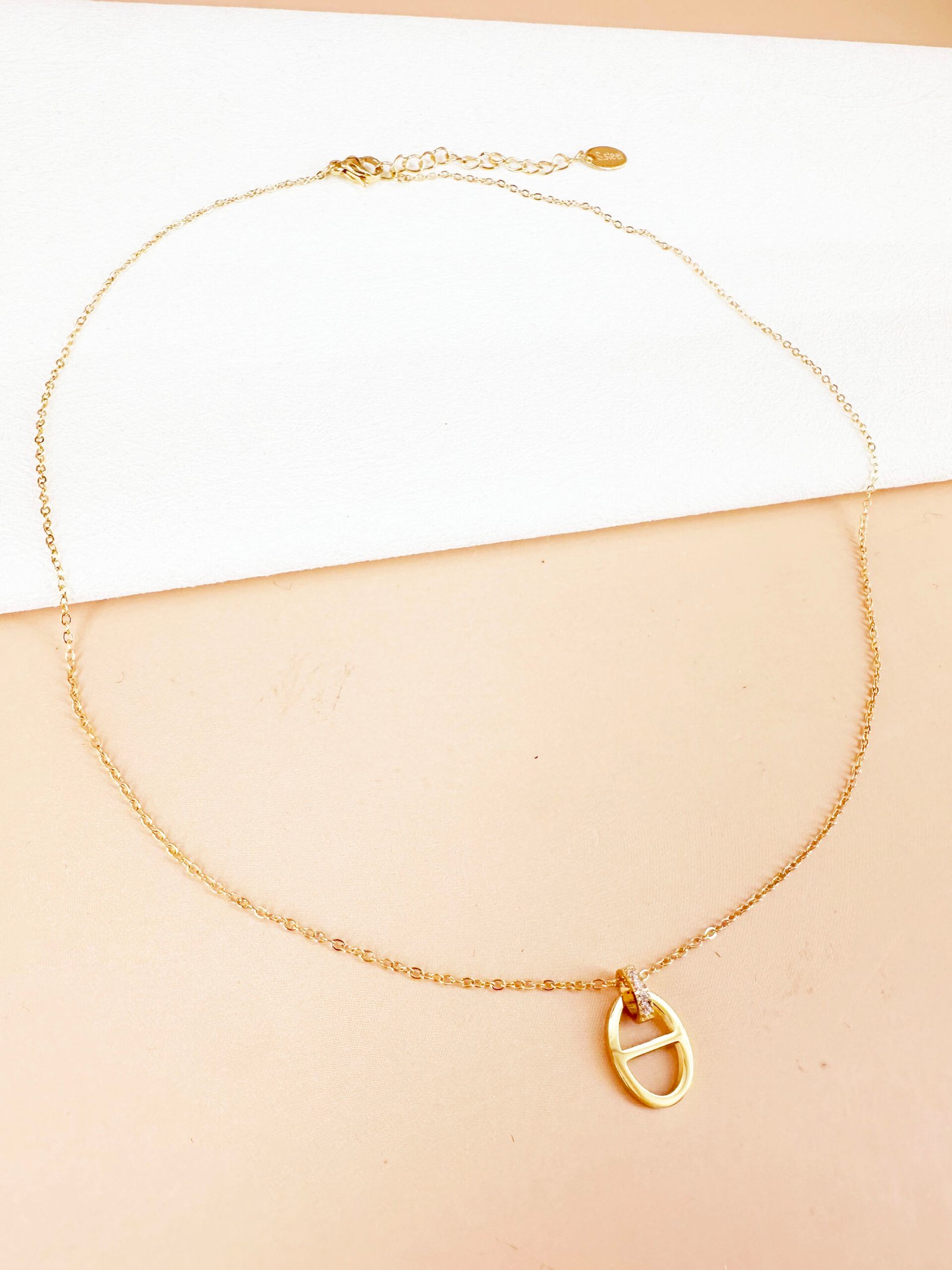 Collier chaîne fine avec pendentif maillon en acier inoxydable