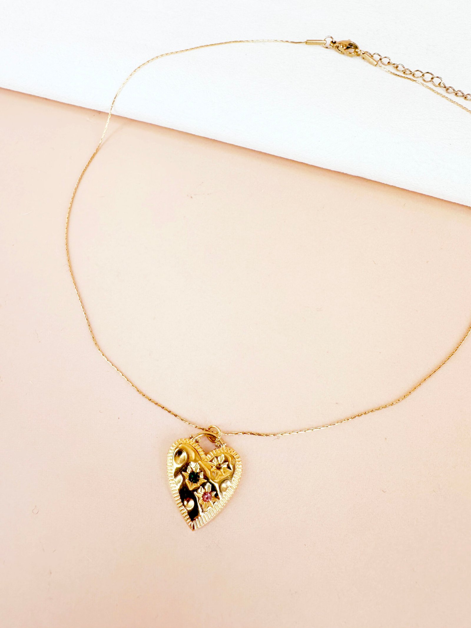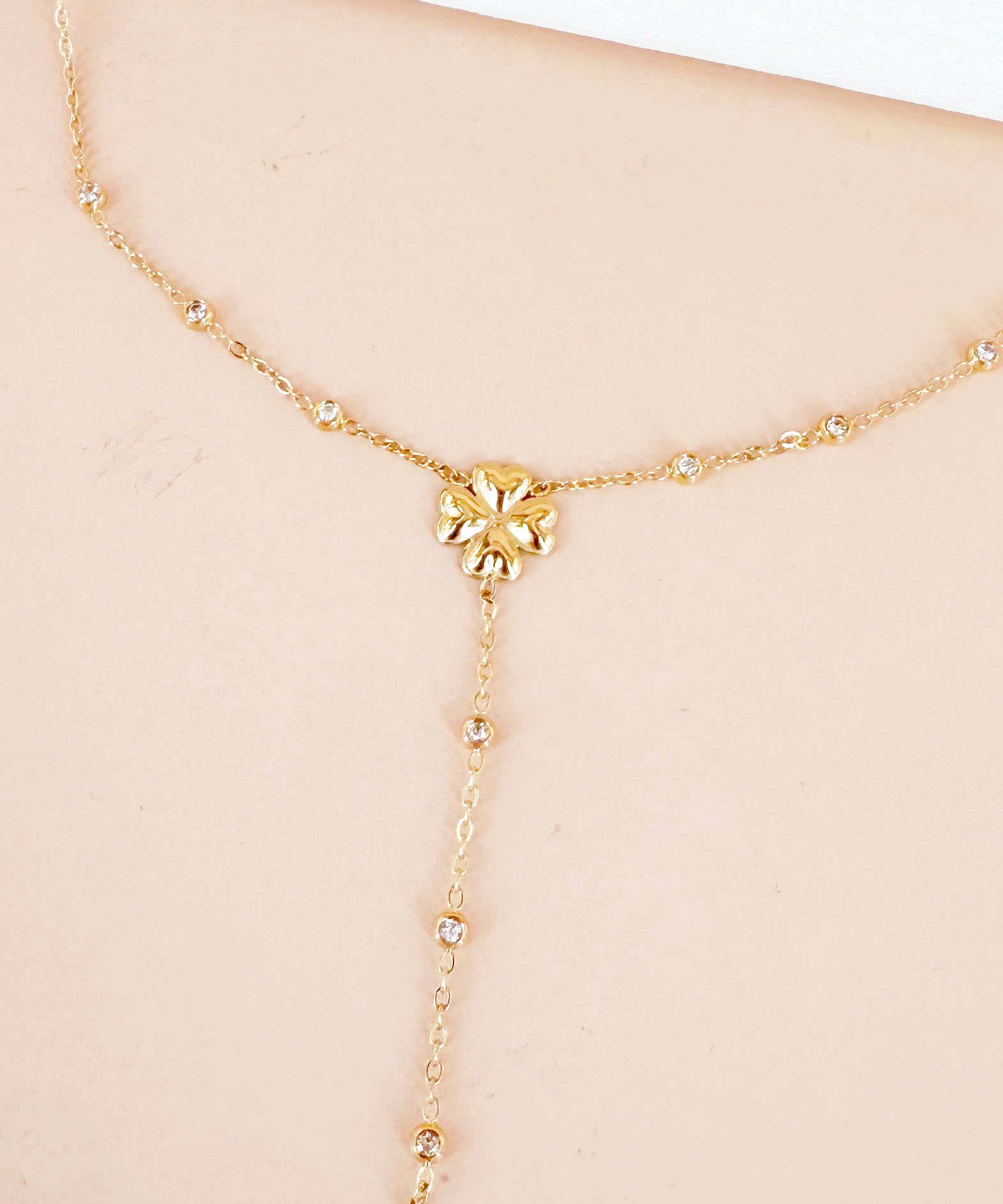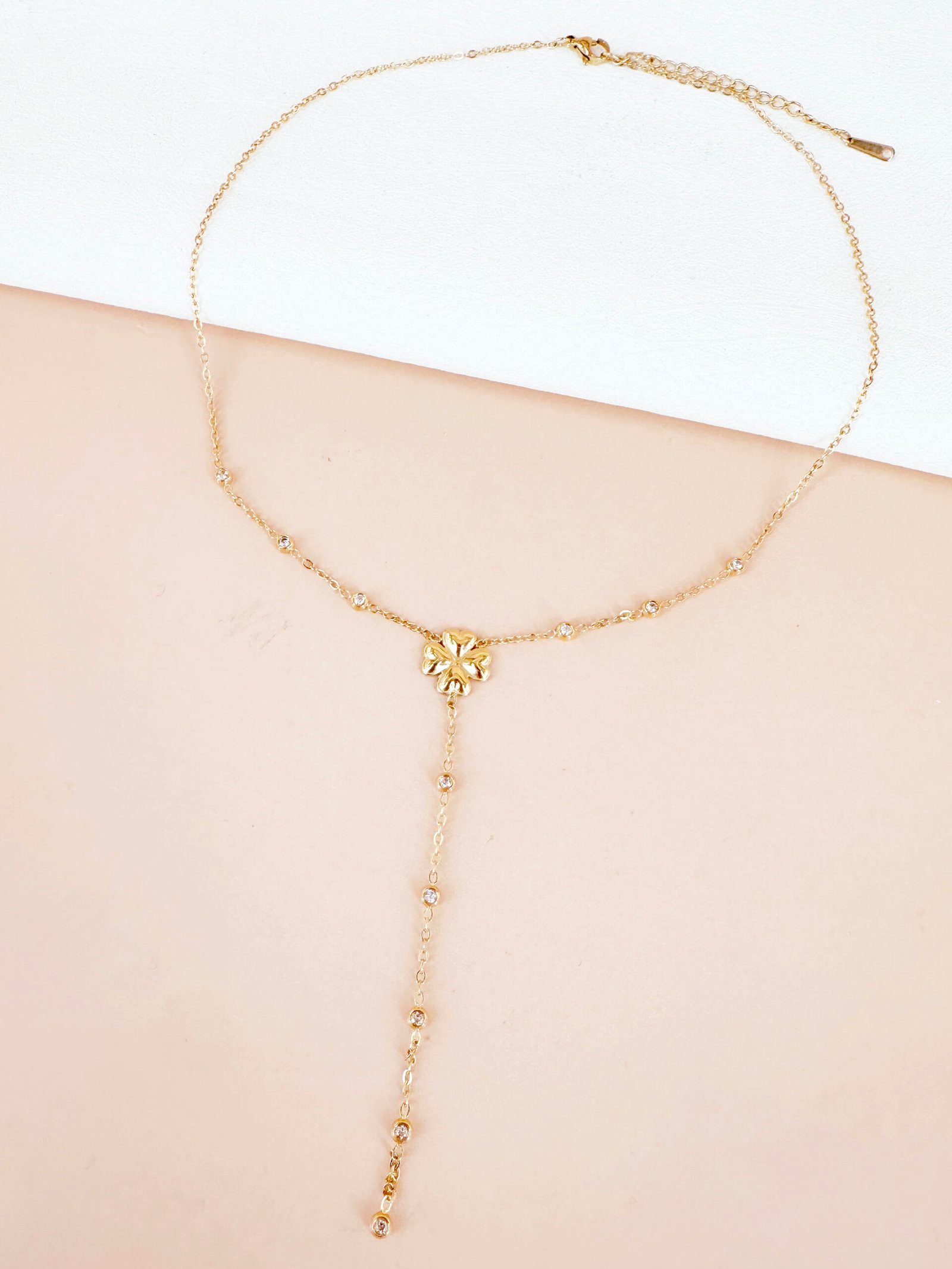Collier cravate Y avec trèfle et strass en acier inoxydable