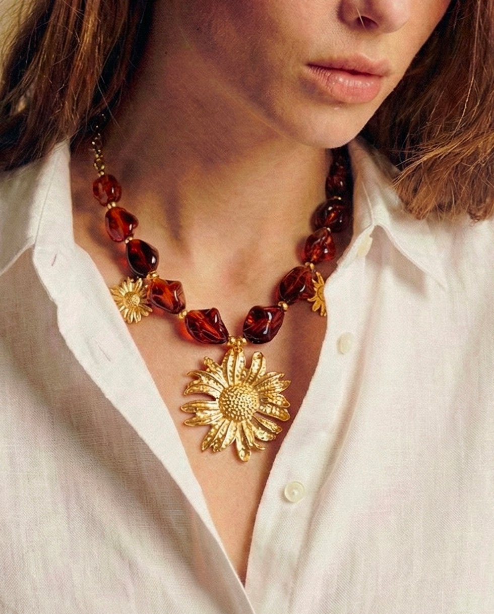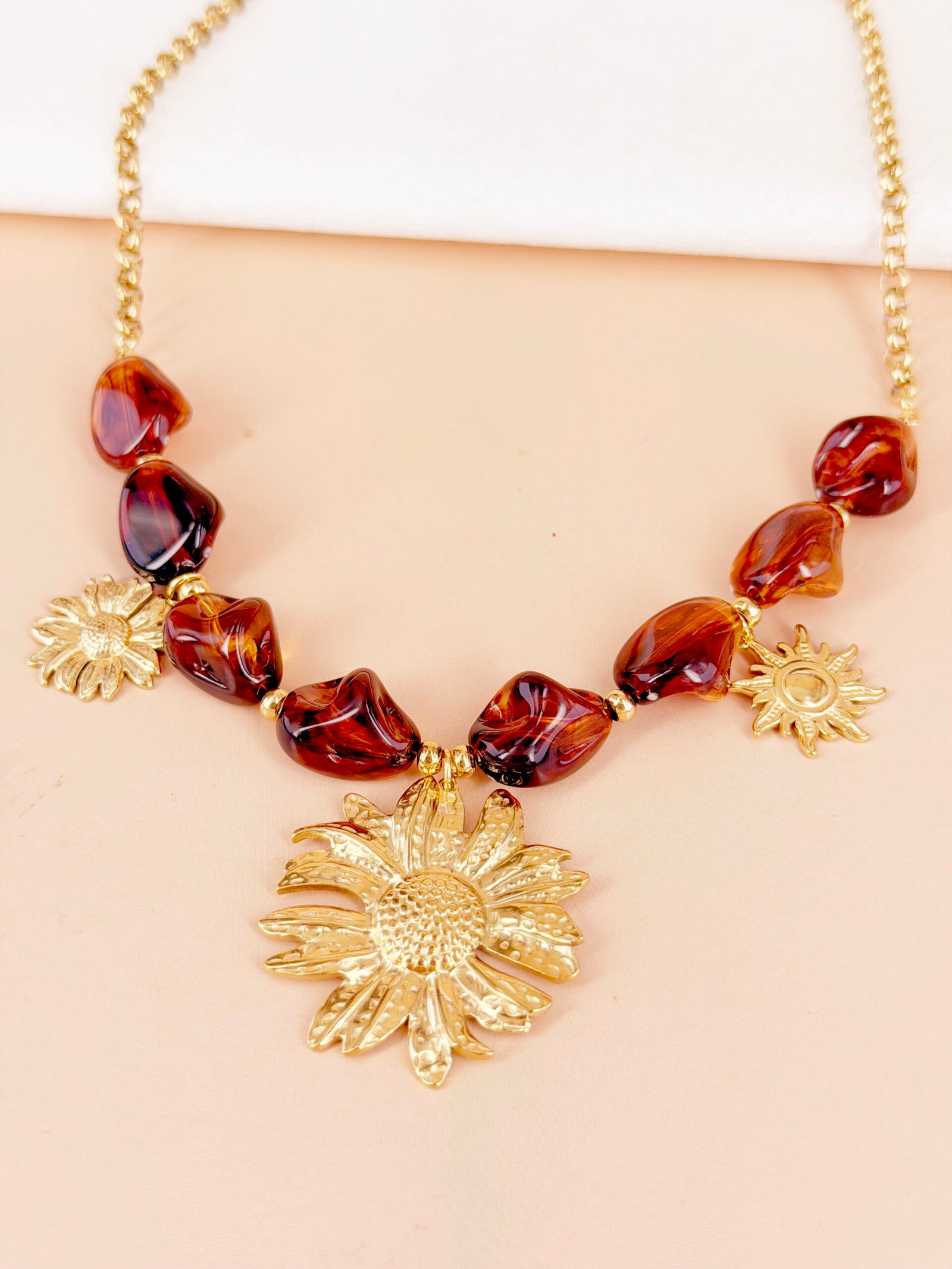 Collier Chloé perle en résine et pendentif fleur
