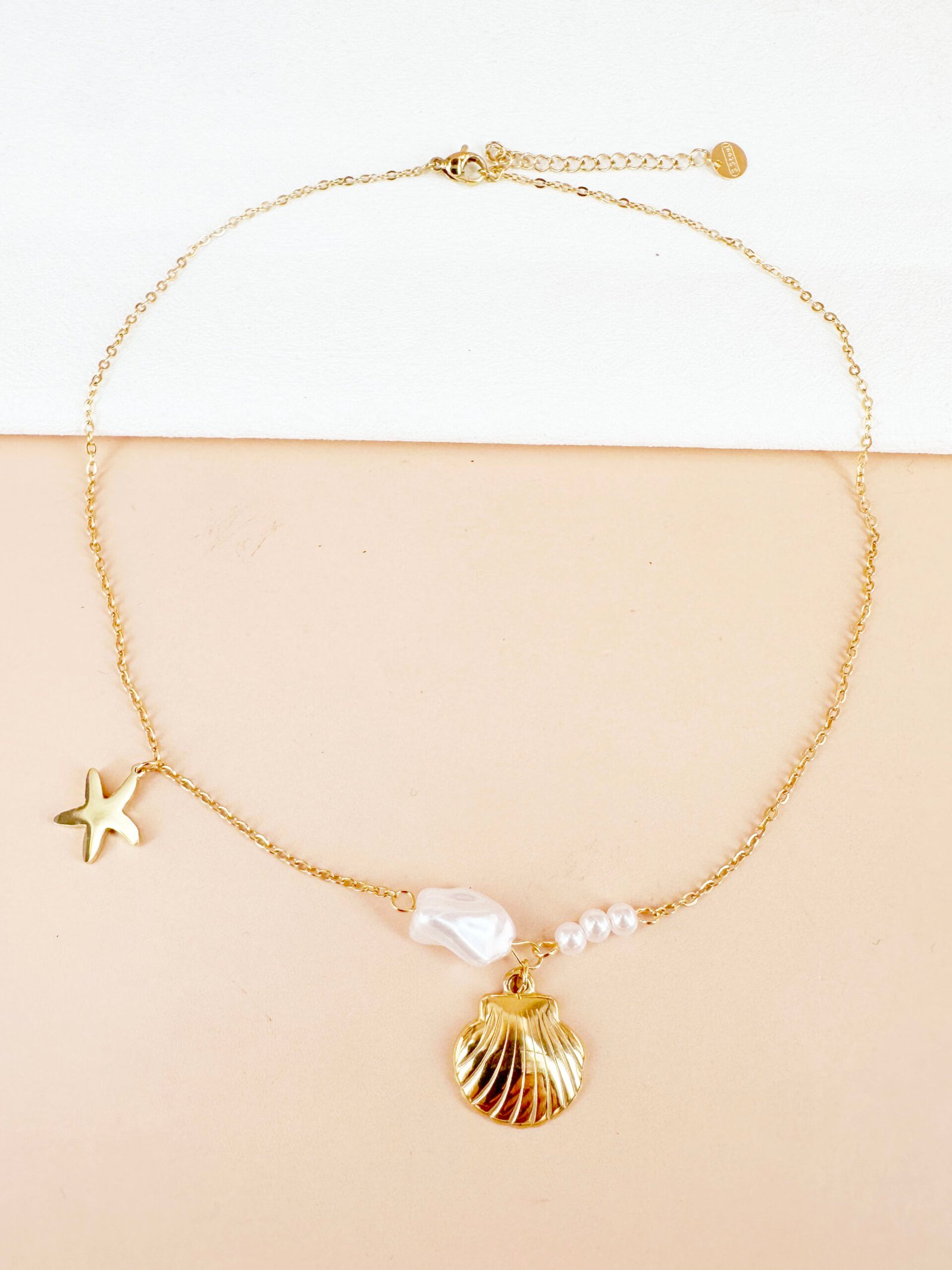 Collier simple pendentifs coquillage et perles en acier inoxydable