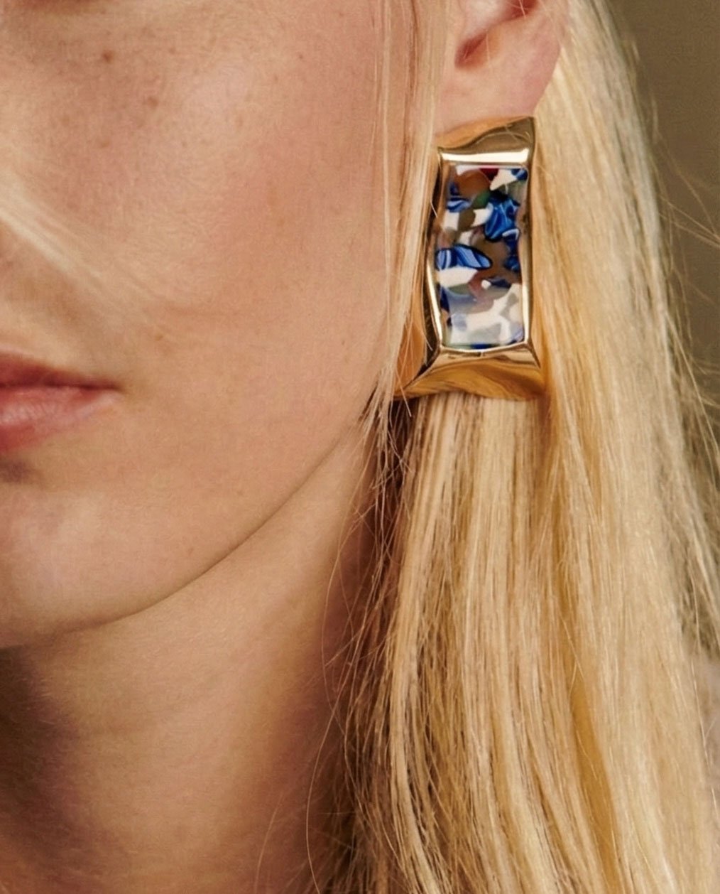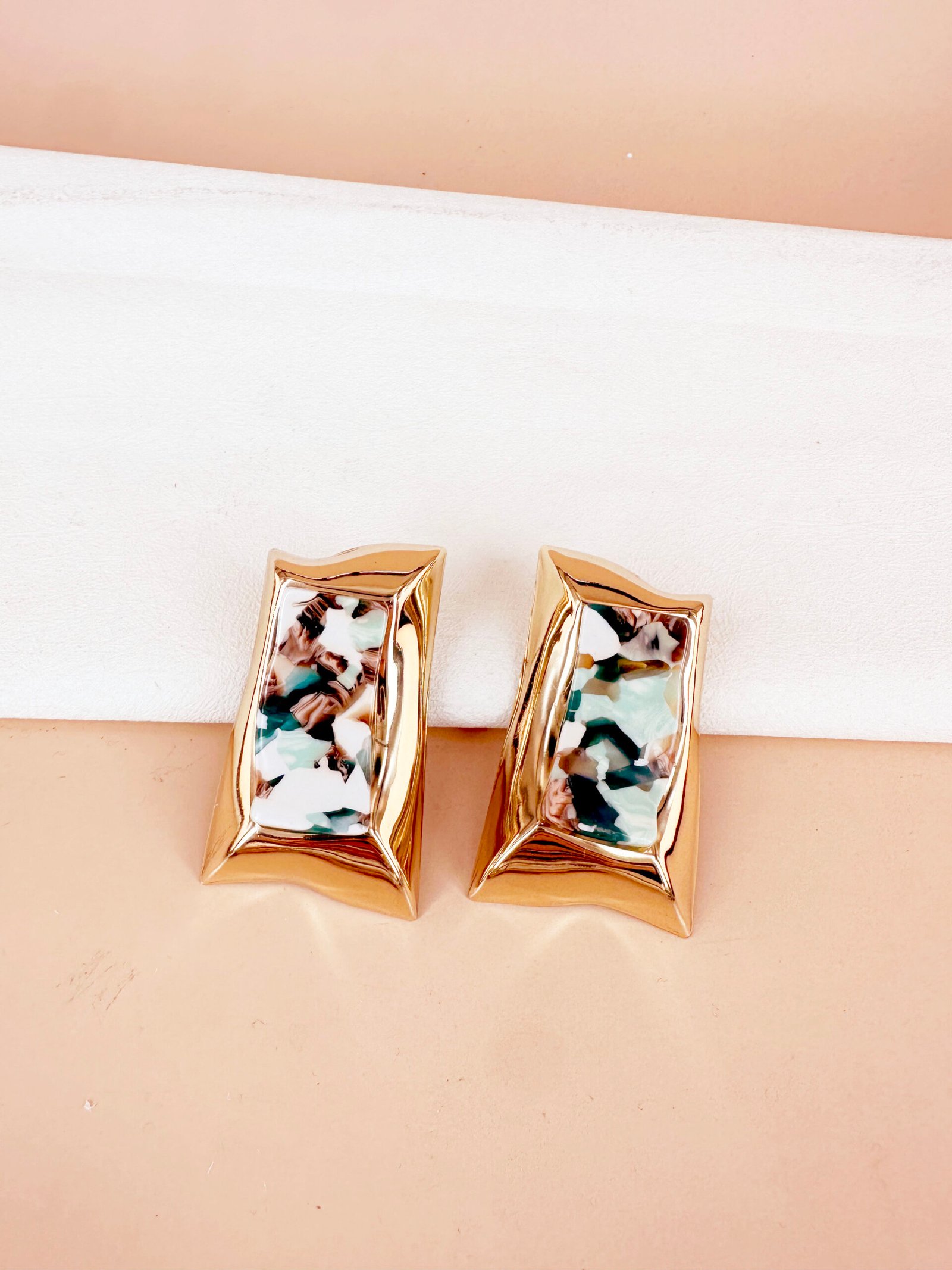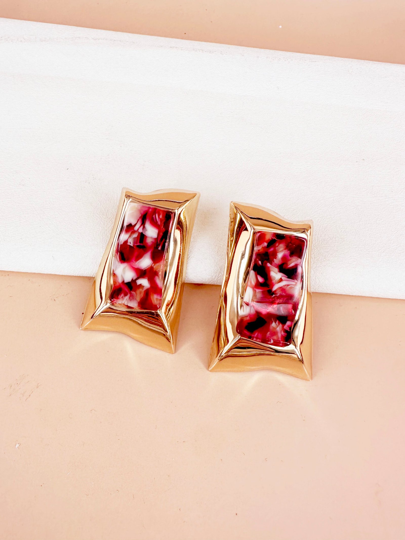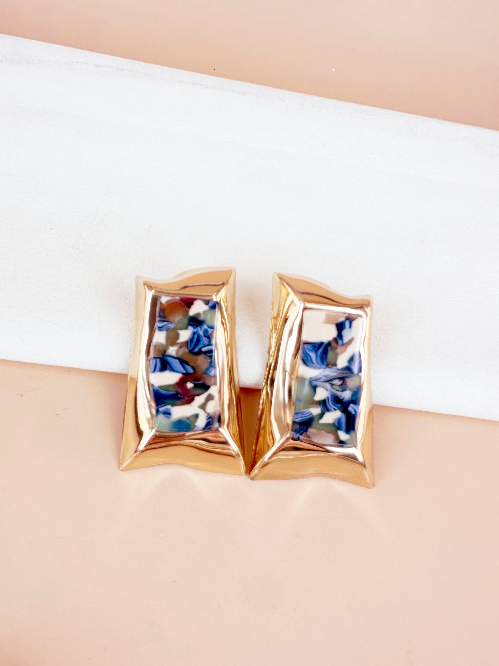 Grande boucles d’oreilles motif résine. Matière: métal fantaisie