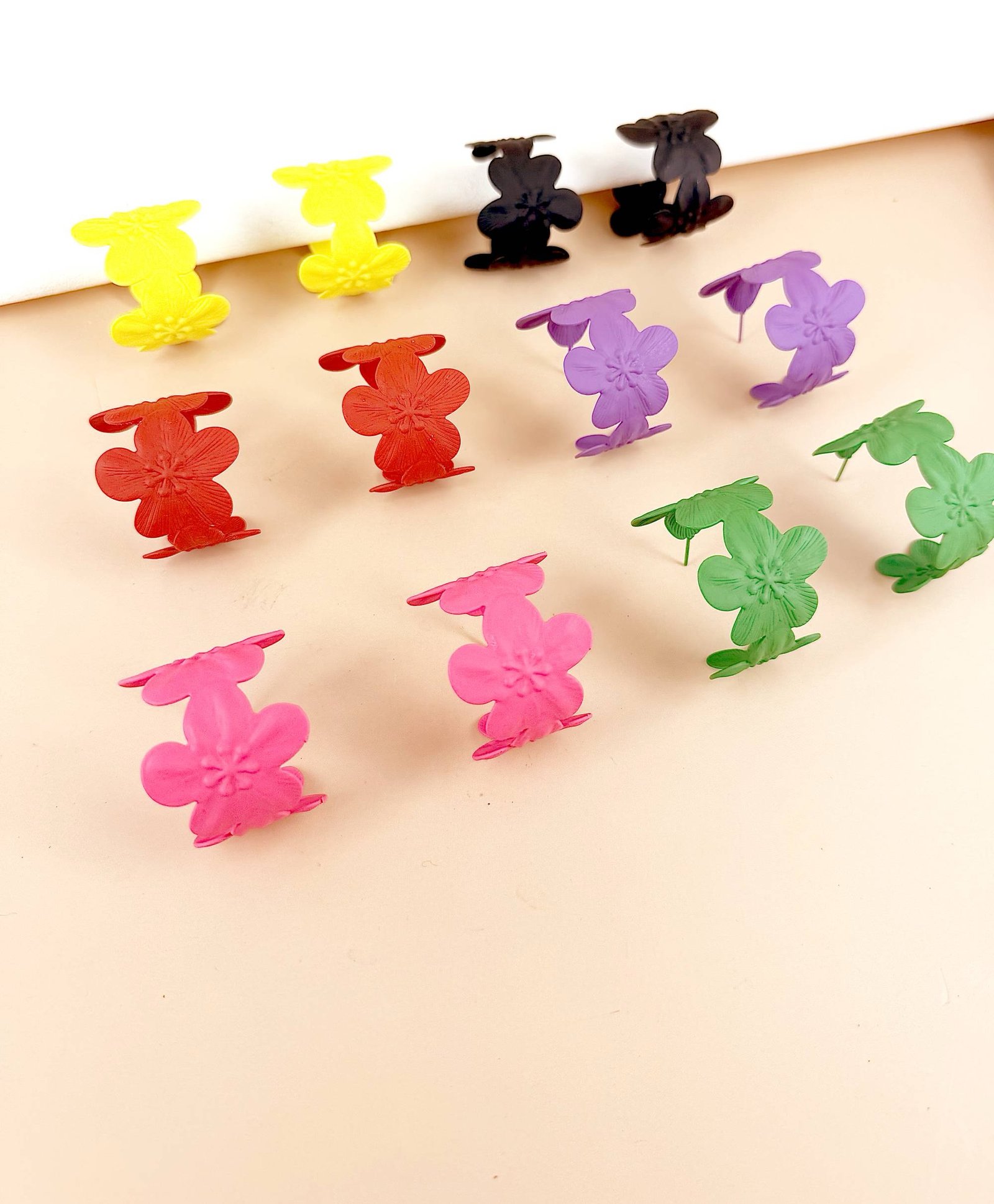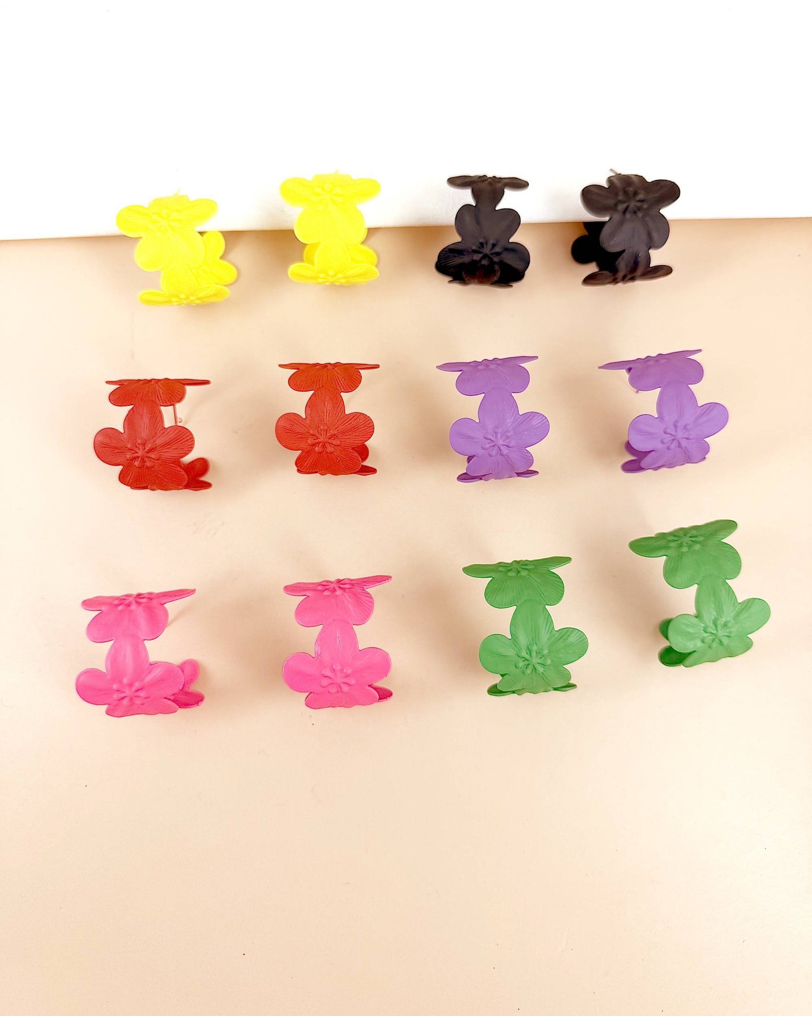 Lot de 12 Paires – Boucles d’Oreilles « Flower Power » en Acrylique Mat