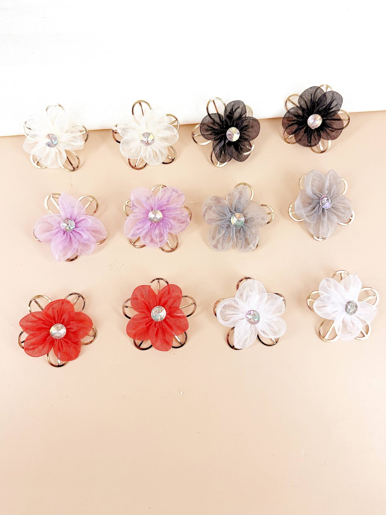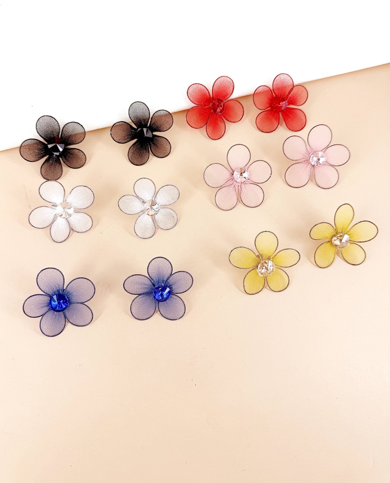 Lot de 12 Paires – Boucles d’Oreilles « Marguerite de Soie » en Acrylique Mat