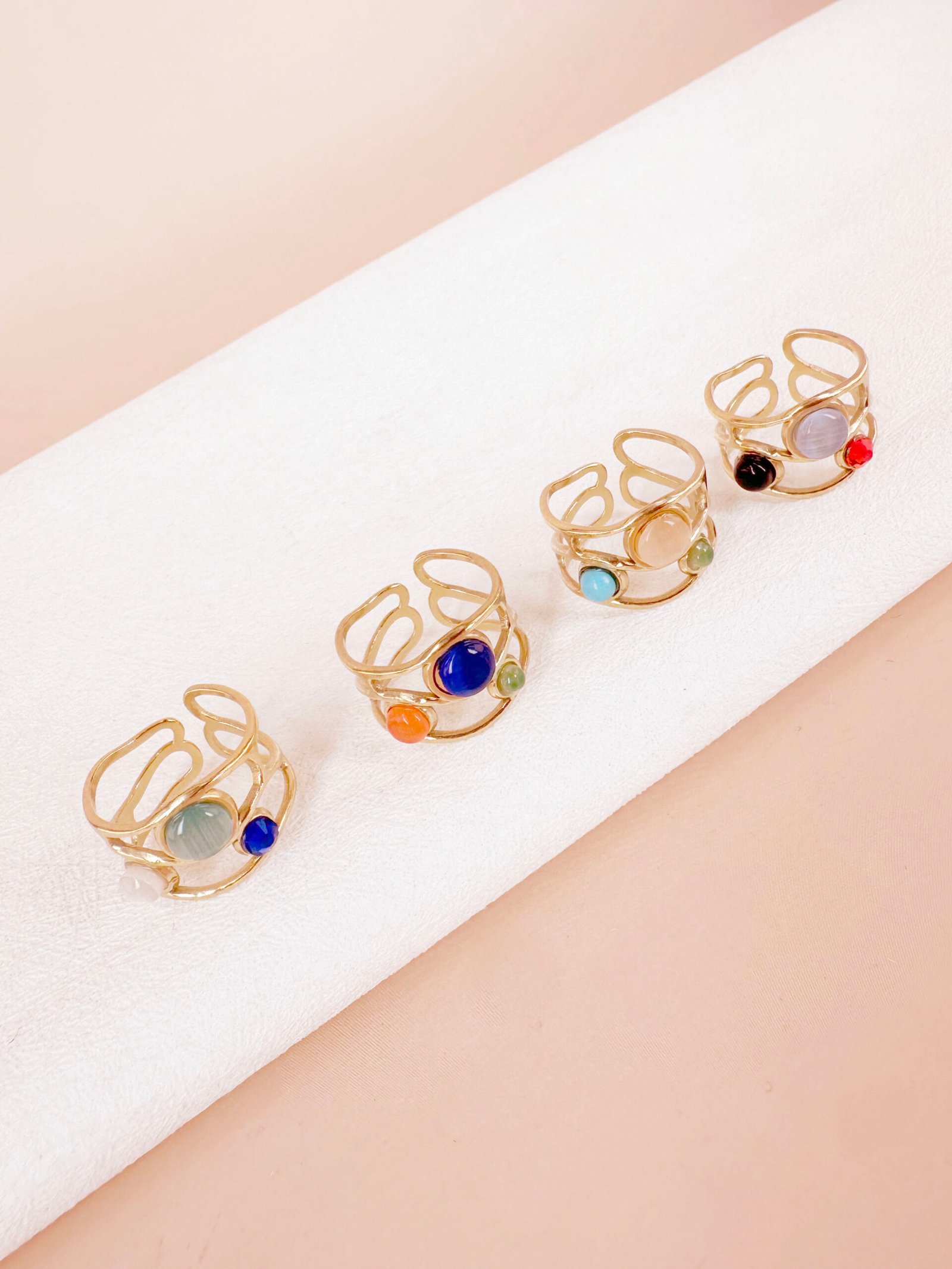 Lot de 4 bagues multiple pierre, Taille unique, Acier inoxydable 304, couleur aléatoire