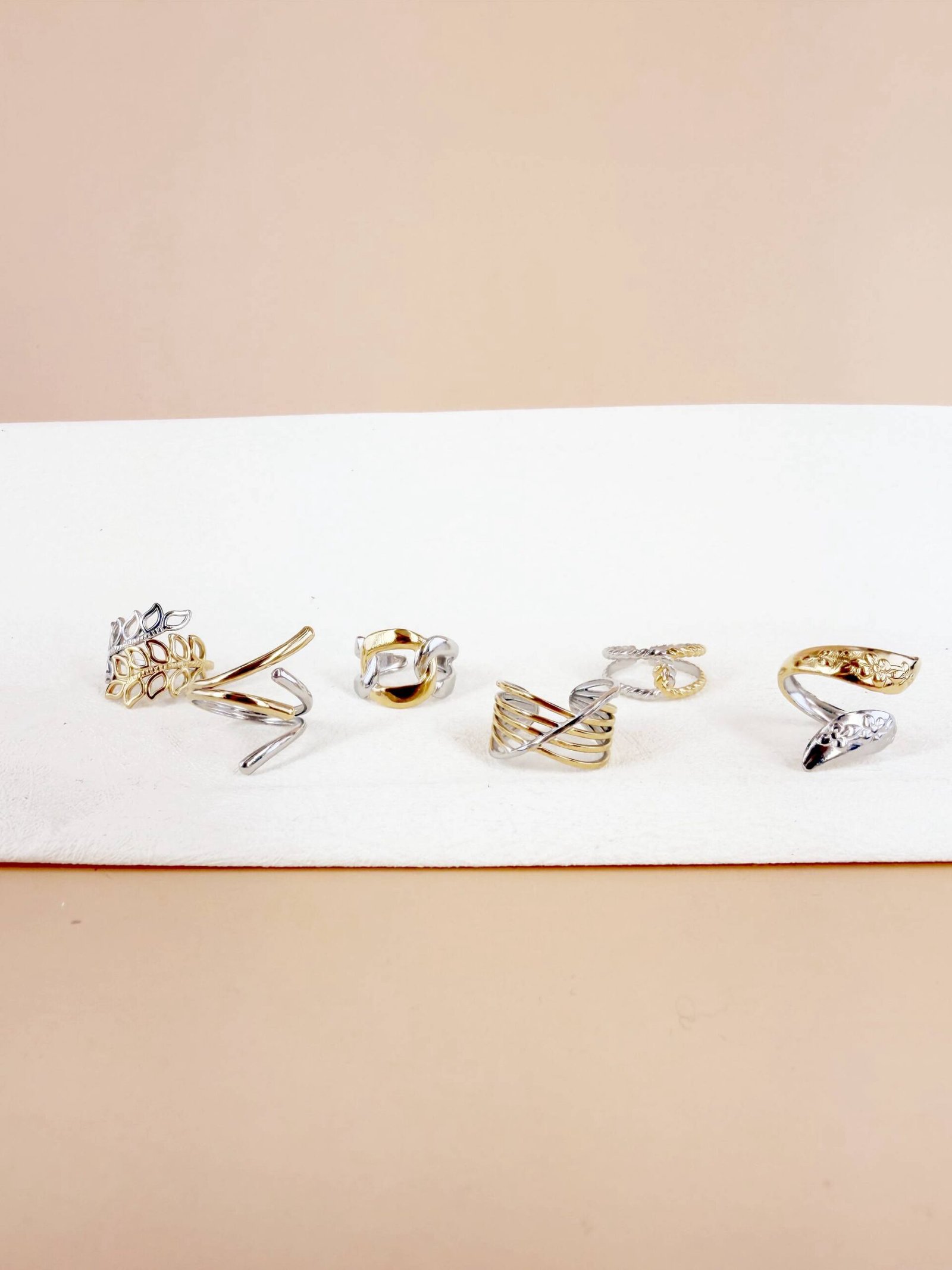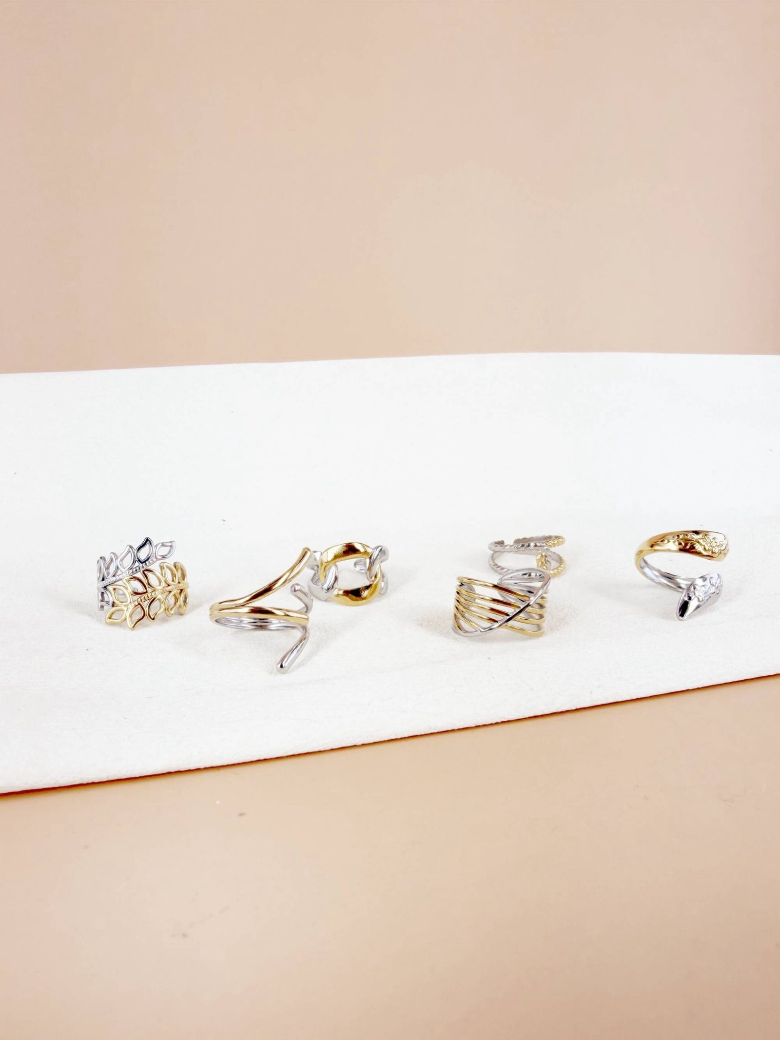 Lot de 6 Bagues Ajustables « Éclat Mixte » – Acier Inoxydable Bicolore