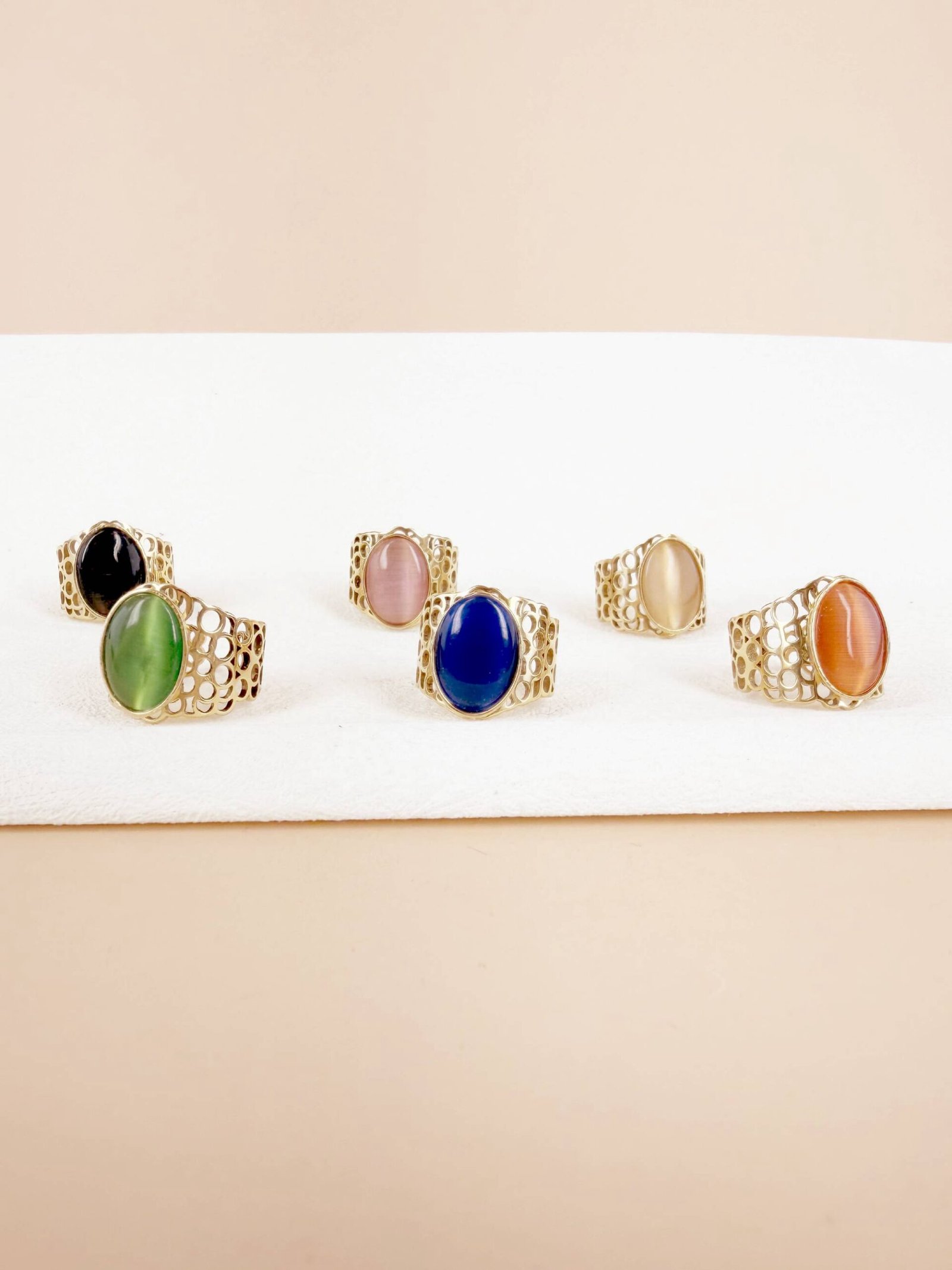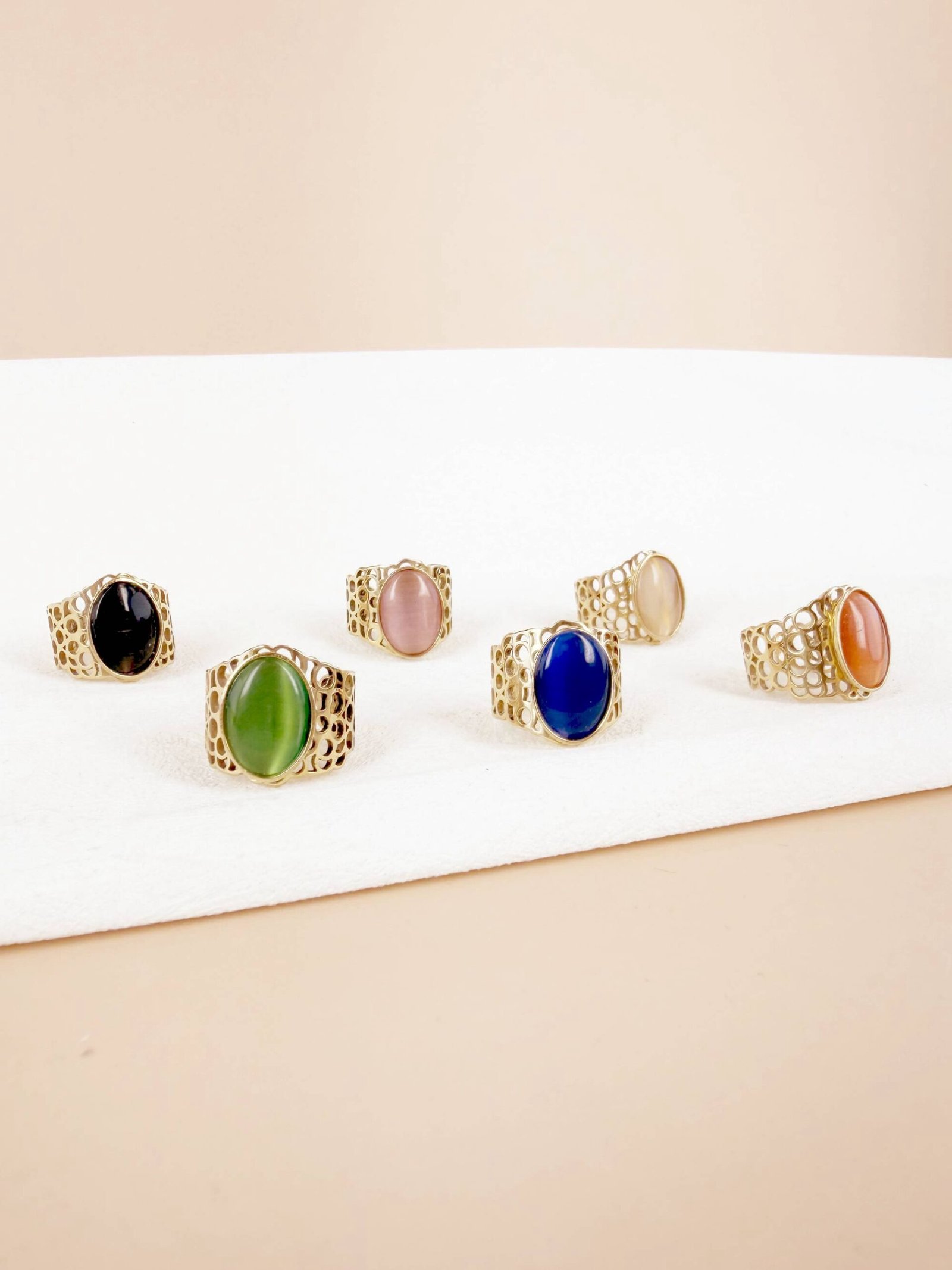 Lot de 6 Bagues Ajustables « Majestic Stones » – Acier Inoxydable