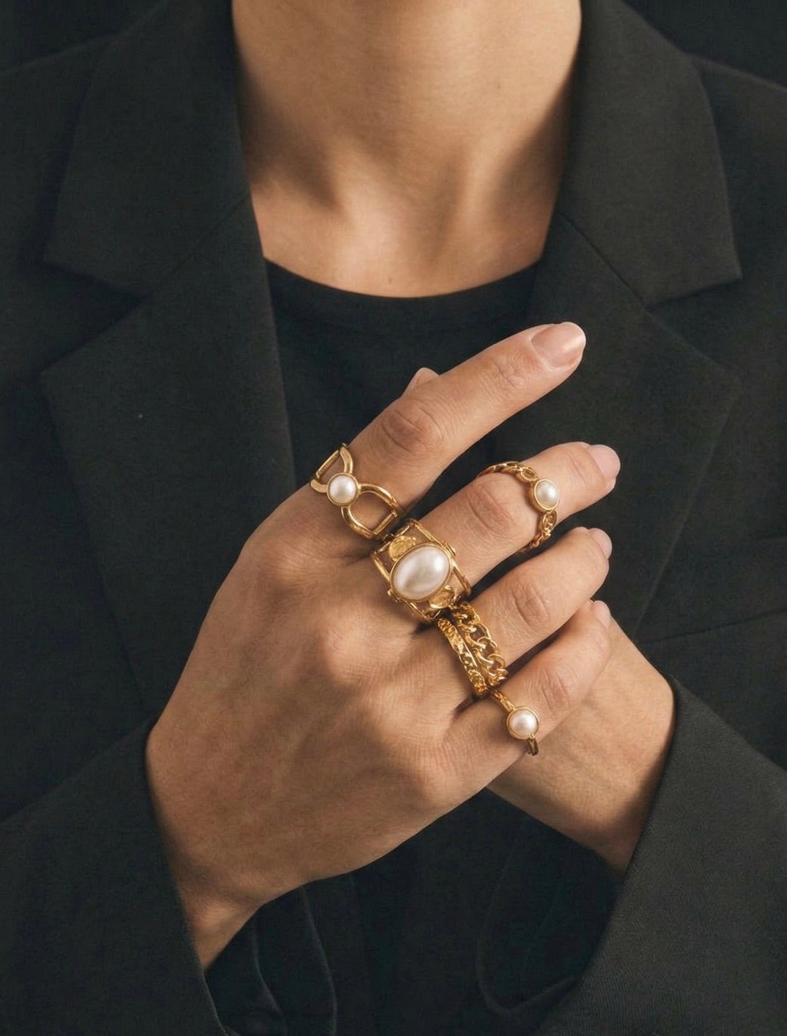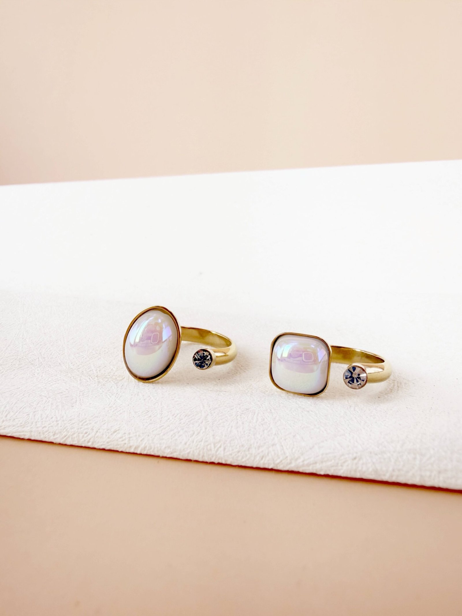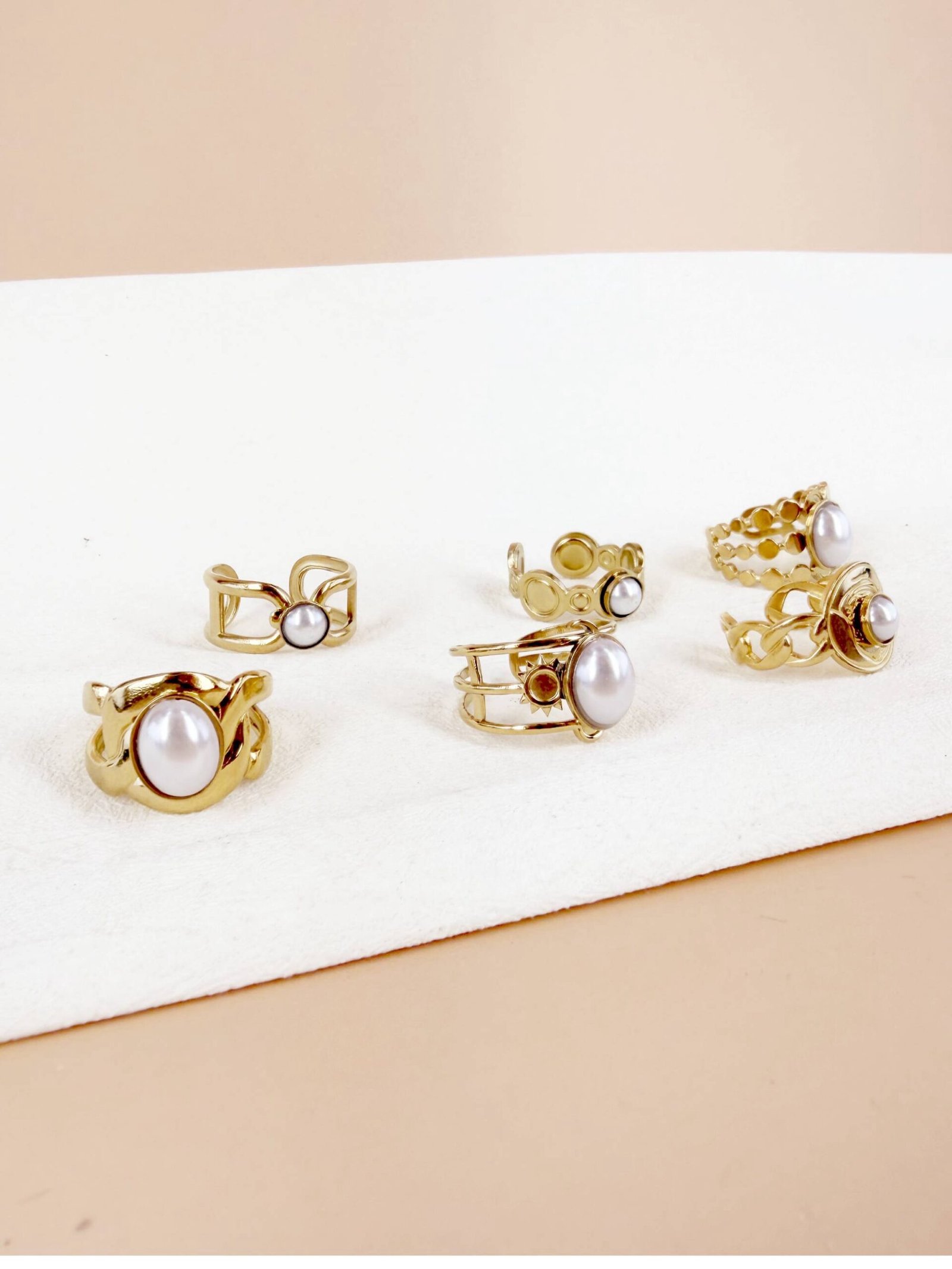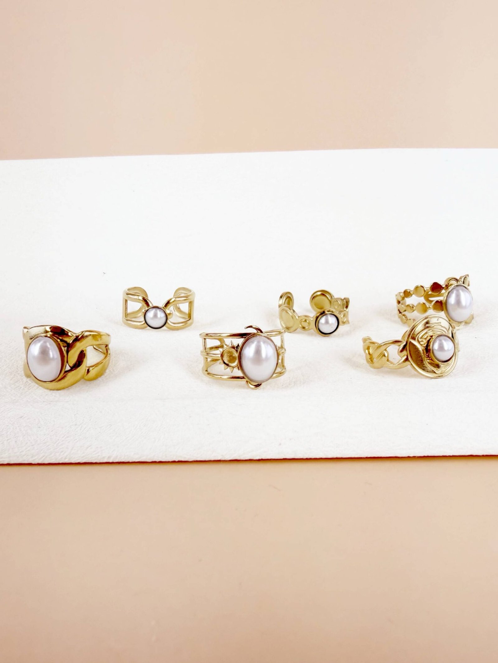 Lot de 6 Bagues Ajustables « Perles Classiques & Or » – Acier Inoxydable