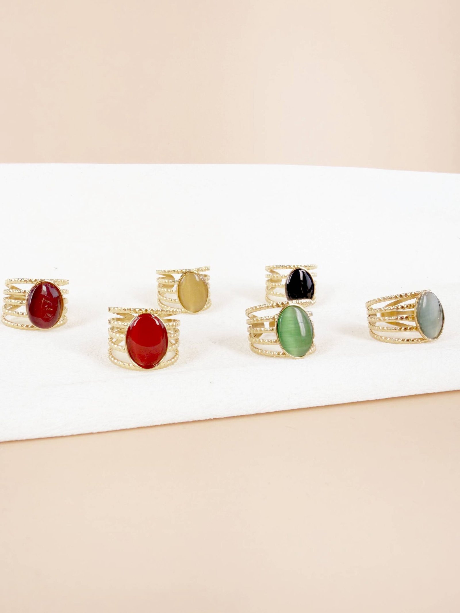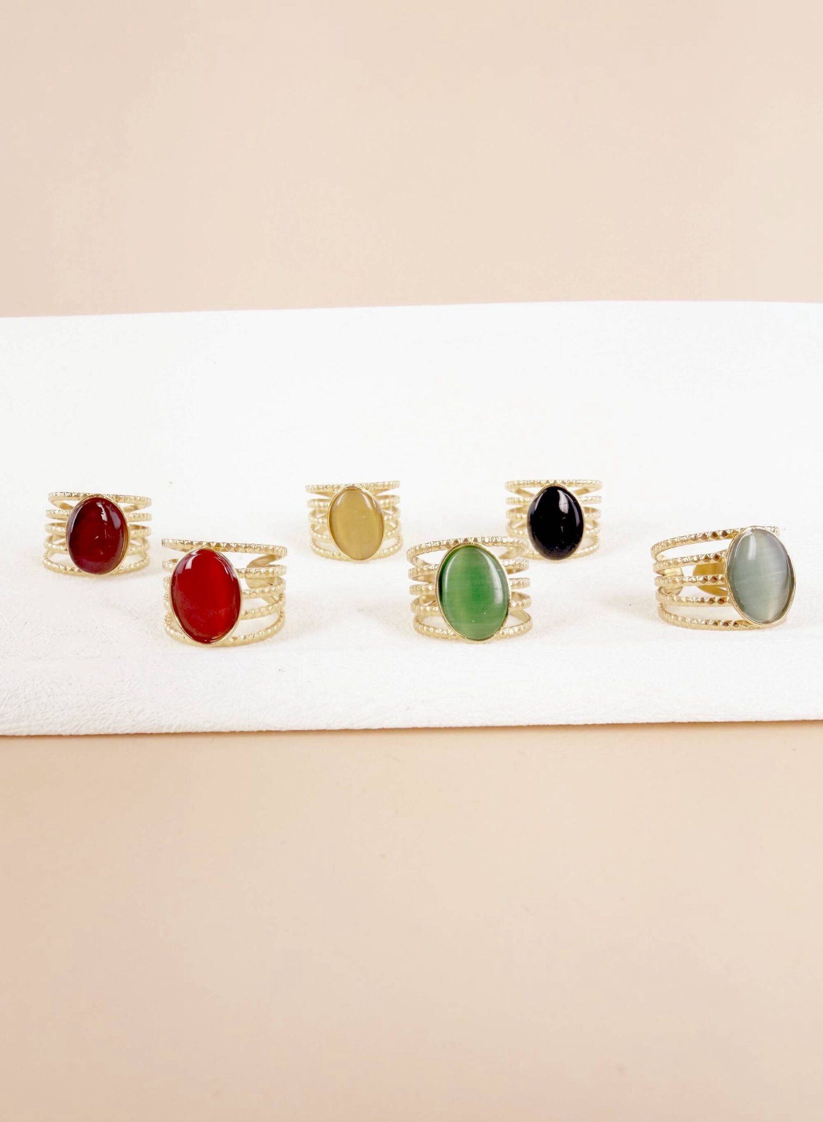 Lot de 6 Bagues Ajustables « Pierres de Lune & Couleurs » – Acier Inoxydable