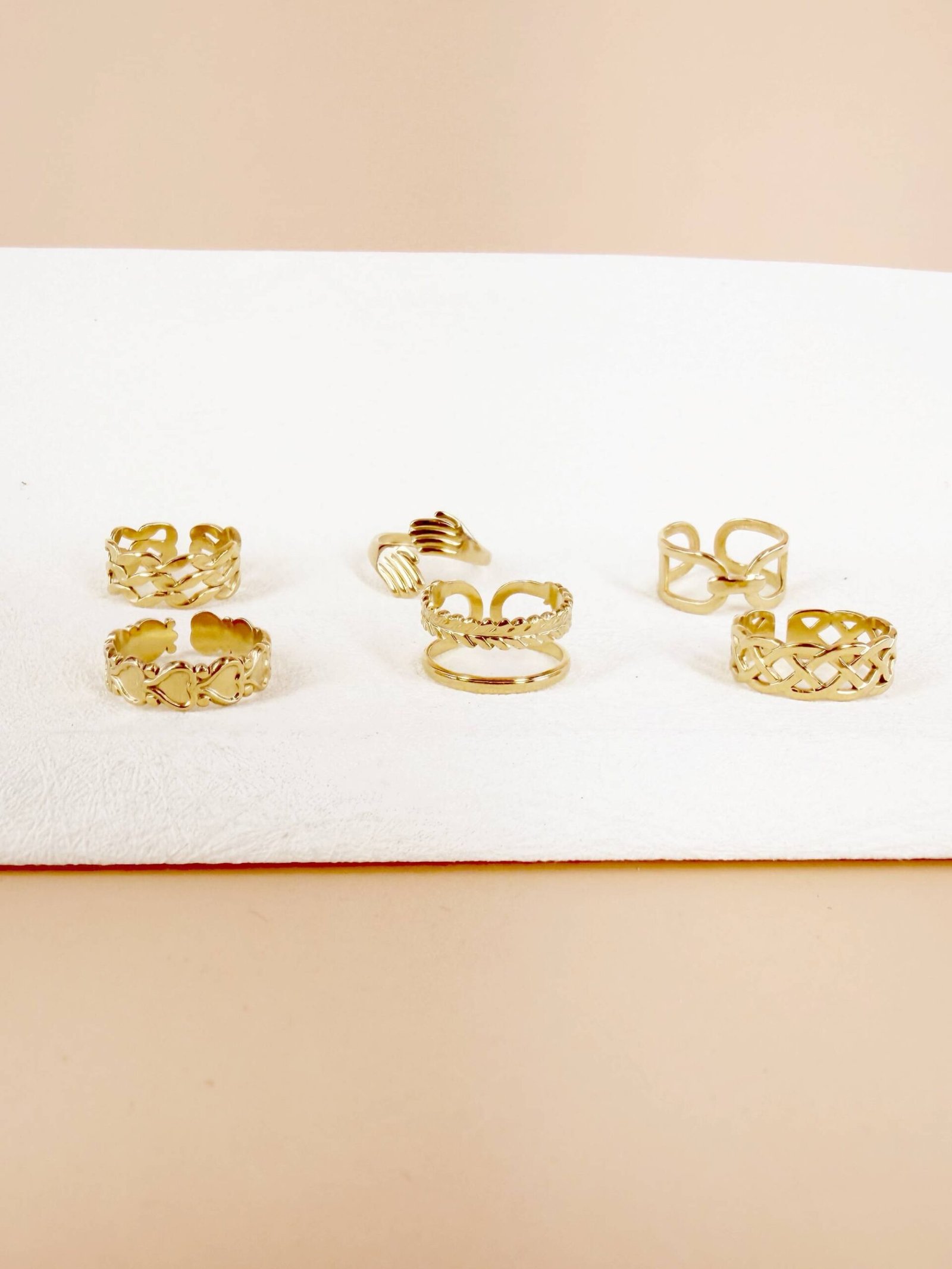 Lot de 6 Bagues Ajustables « Tissages & Liens » – Acier Inoxydable Doré