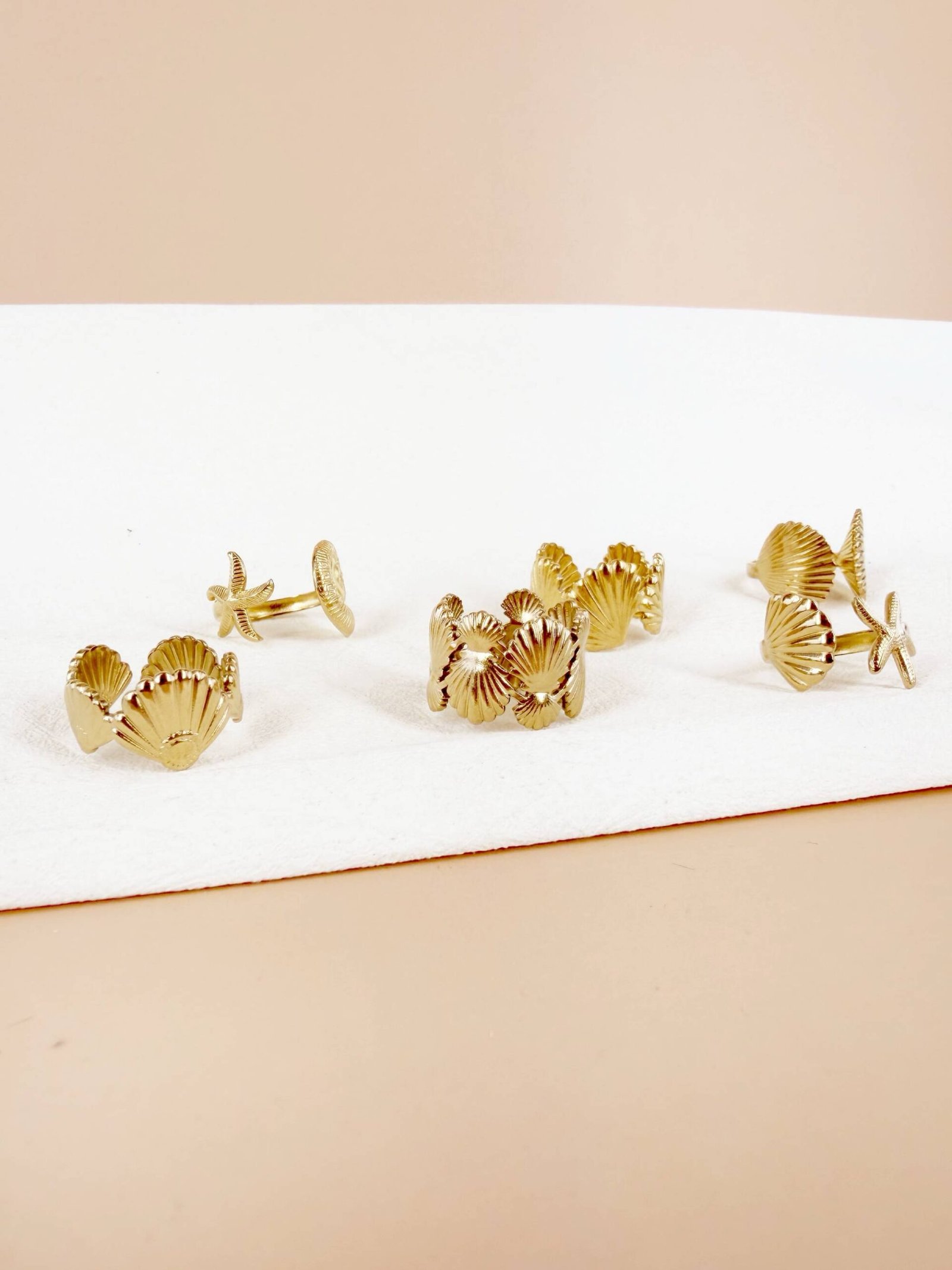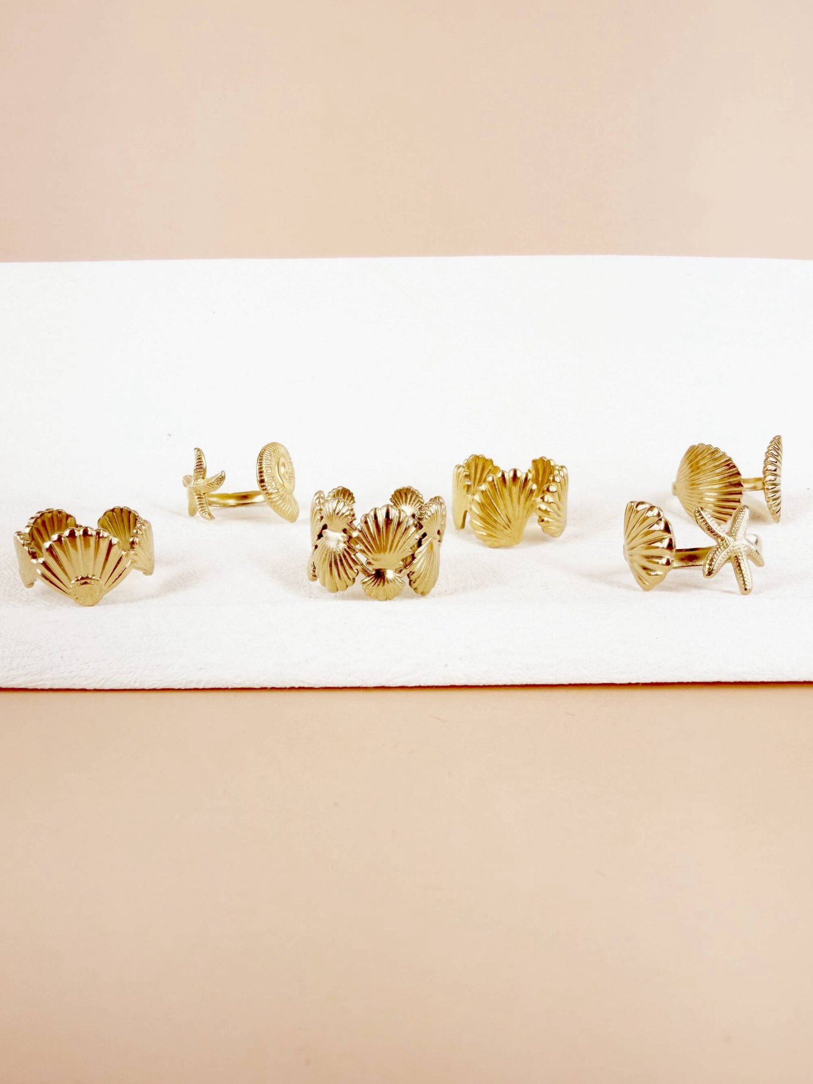 Lot de 6 Bagues Ajustables « Trésors de l’Océan » – Acier Inoxydable