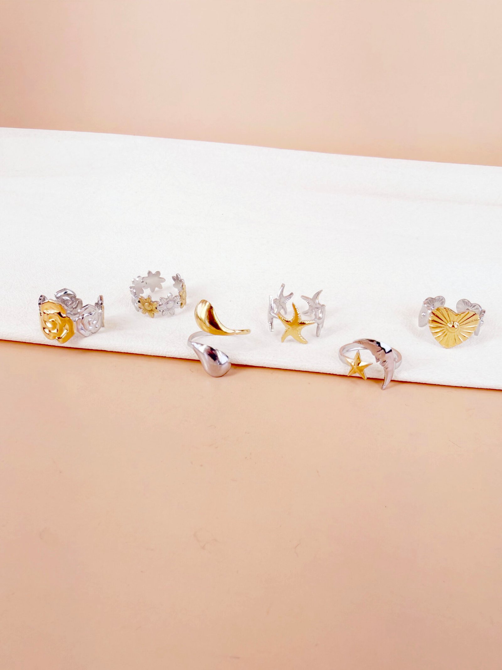 Lot de 6 bagues argent doré Bianca