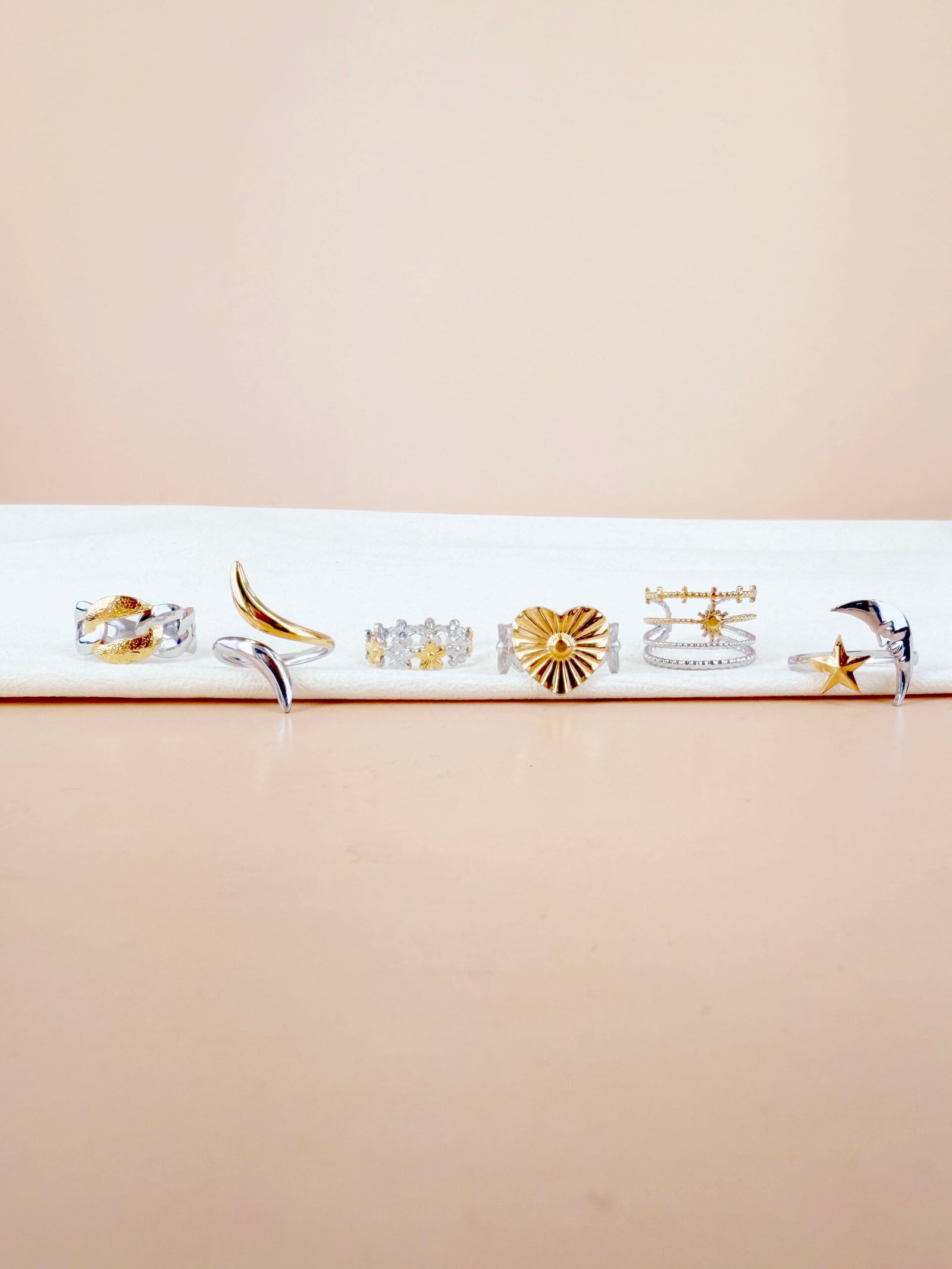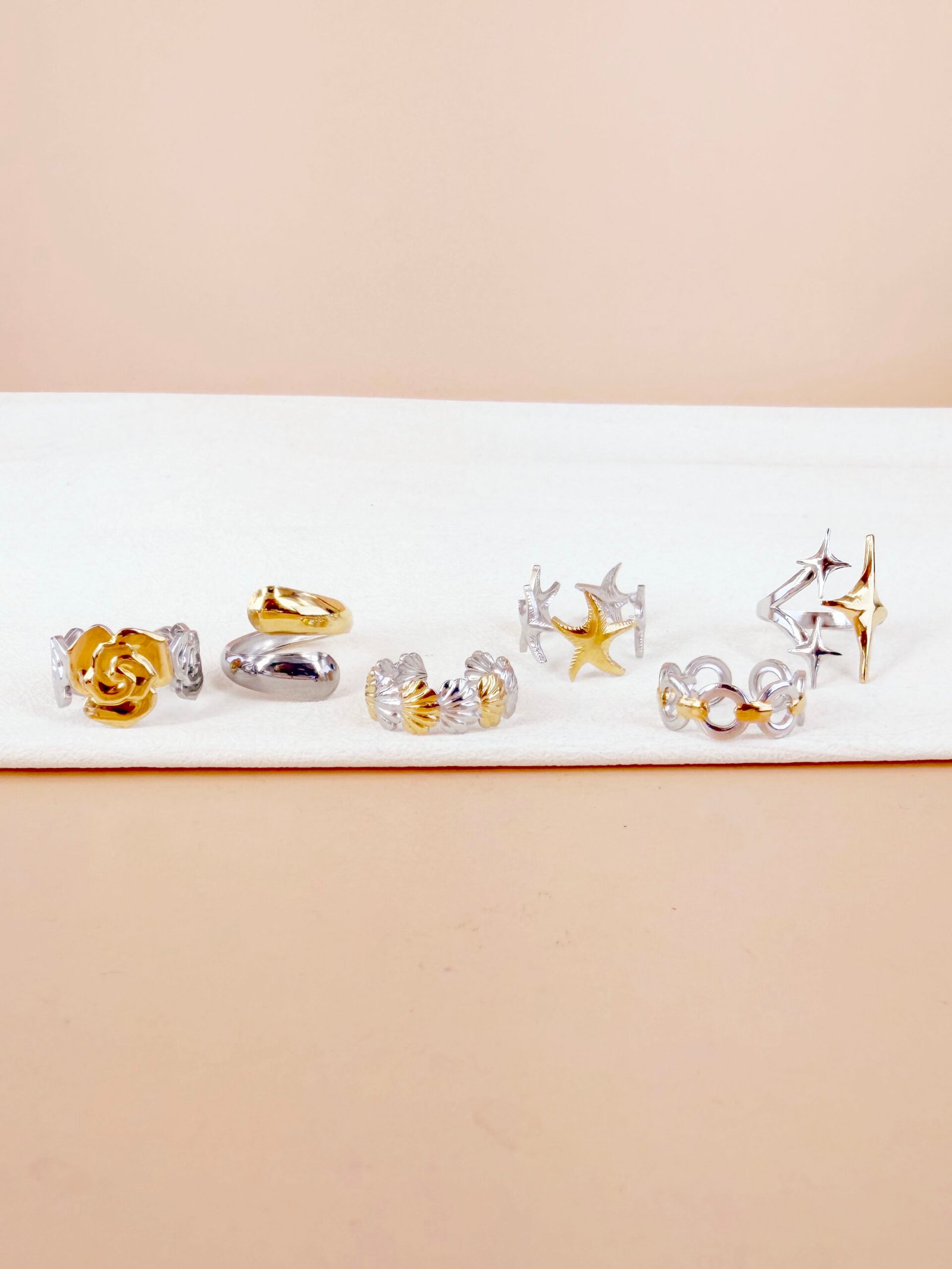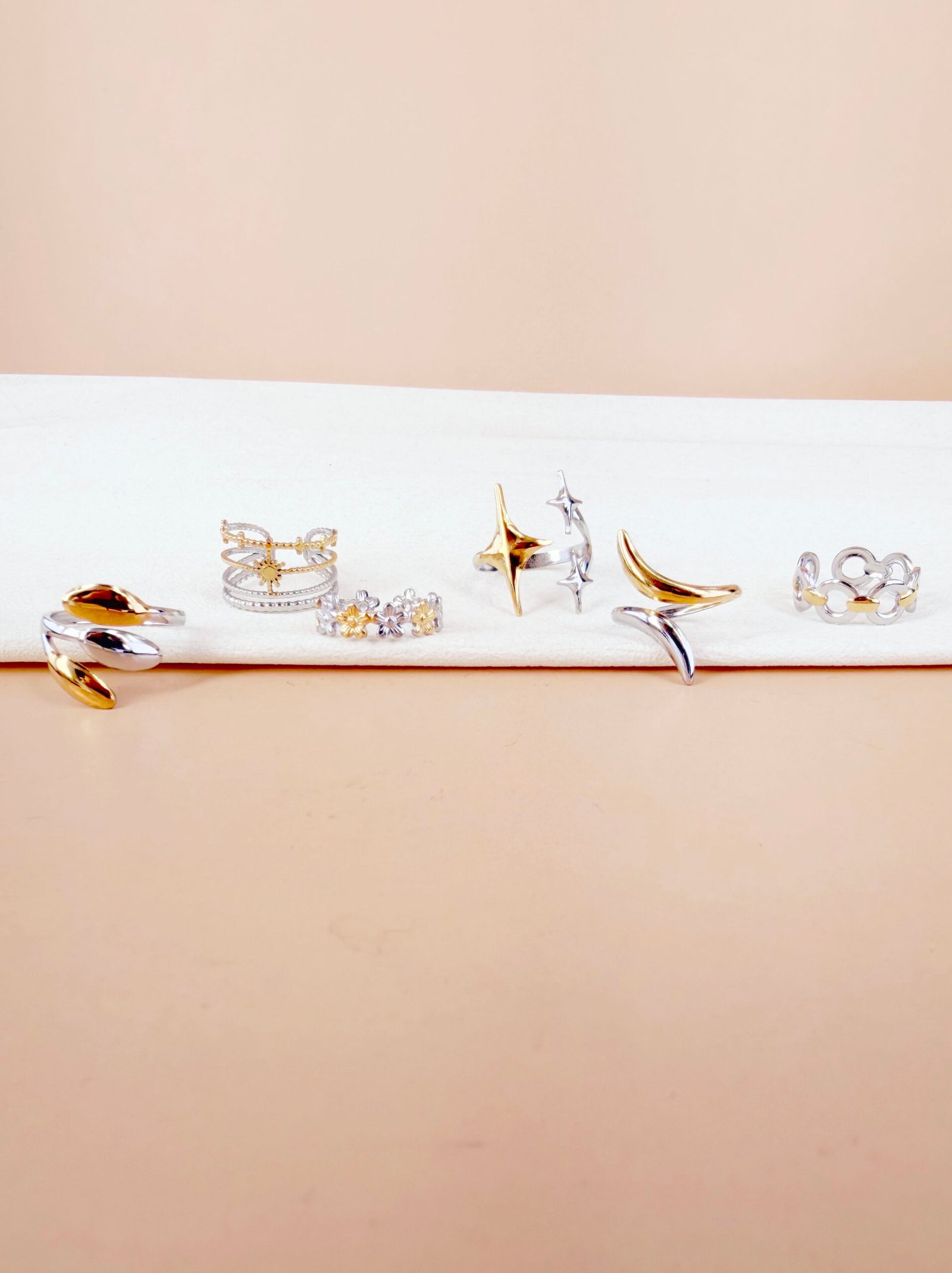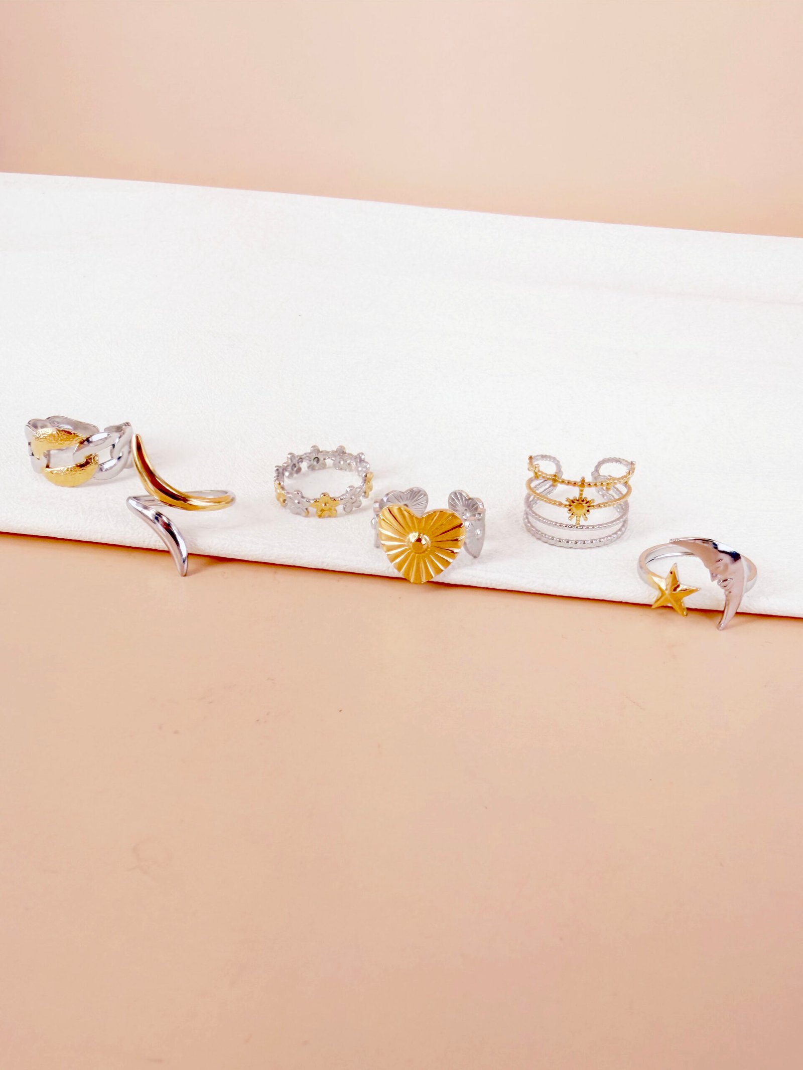 Lot de 6 bagues argent doré Frida