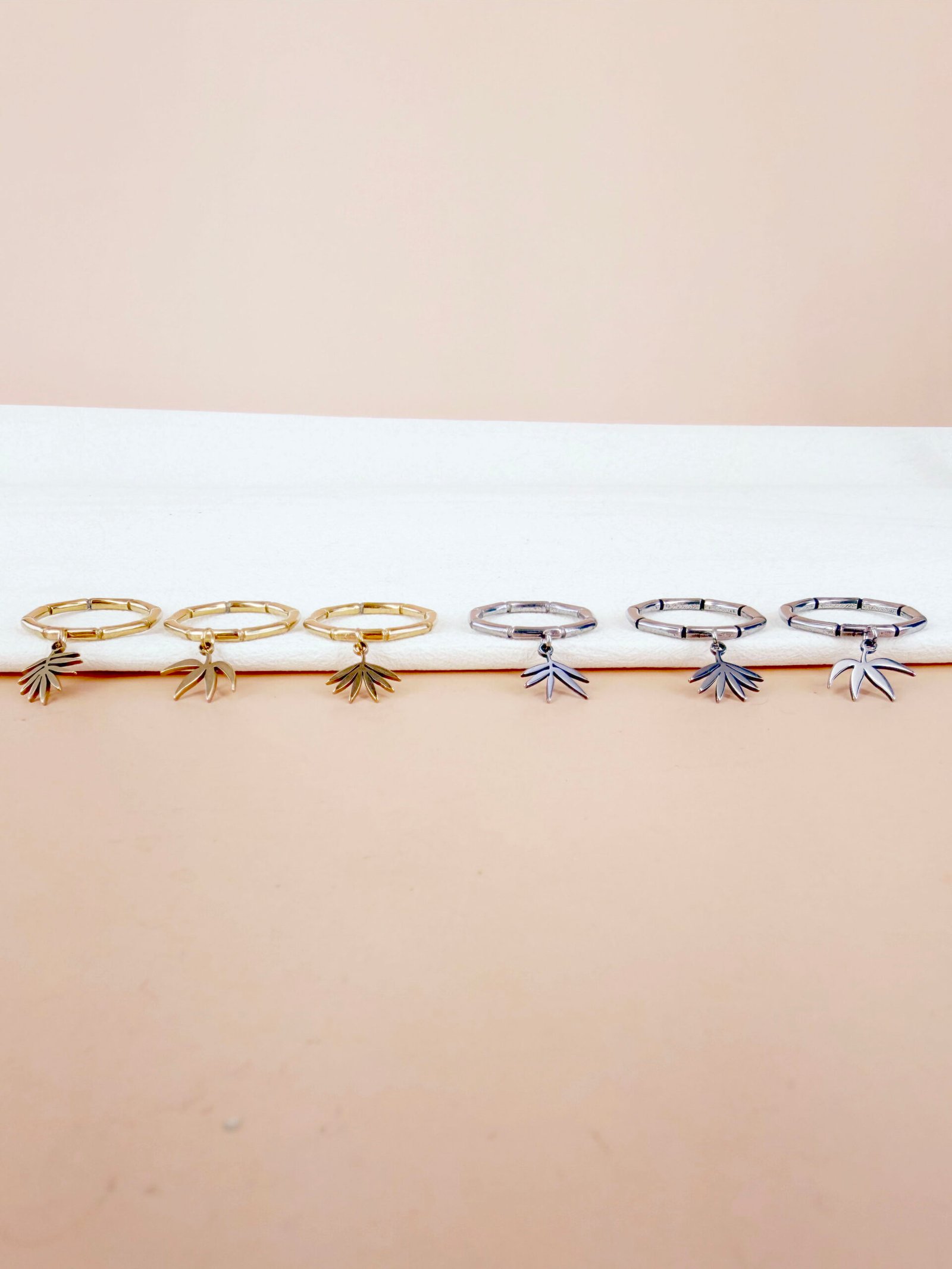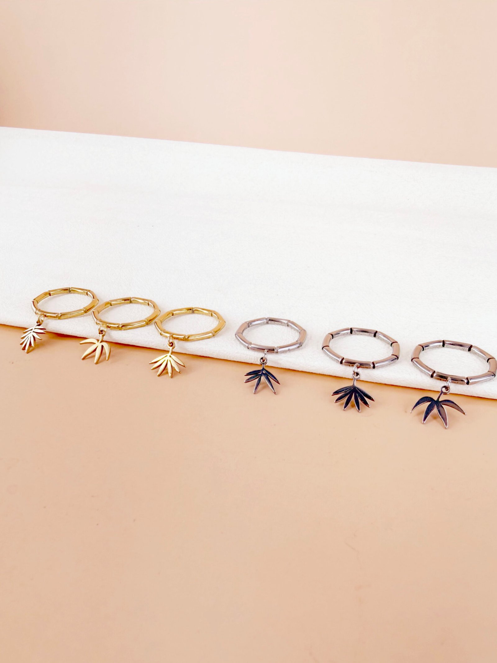 Lot de 6 bagues Feuilles. Tailles aléatoires.